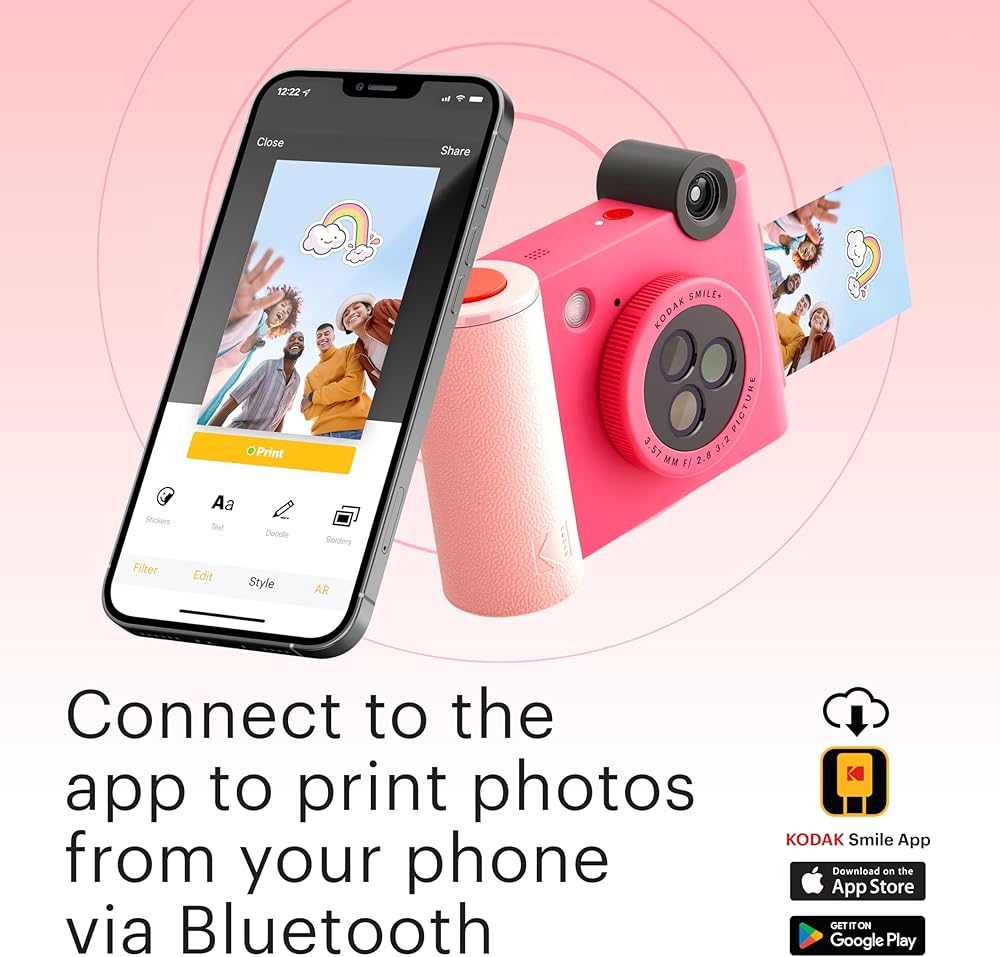 PERSONALIZE WITH BLUETOOTH – Connect this modern-day camera to your smartphone via Bluetooth and edit your photos with text, colors, stickers, and more before you print.