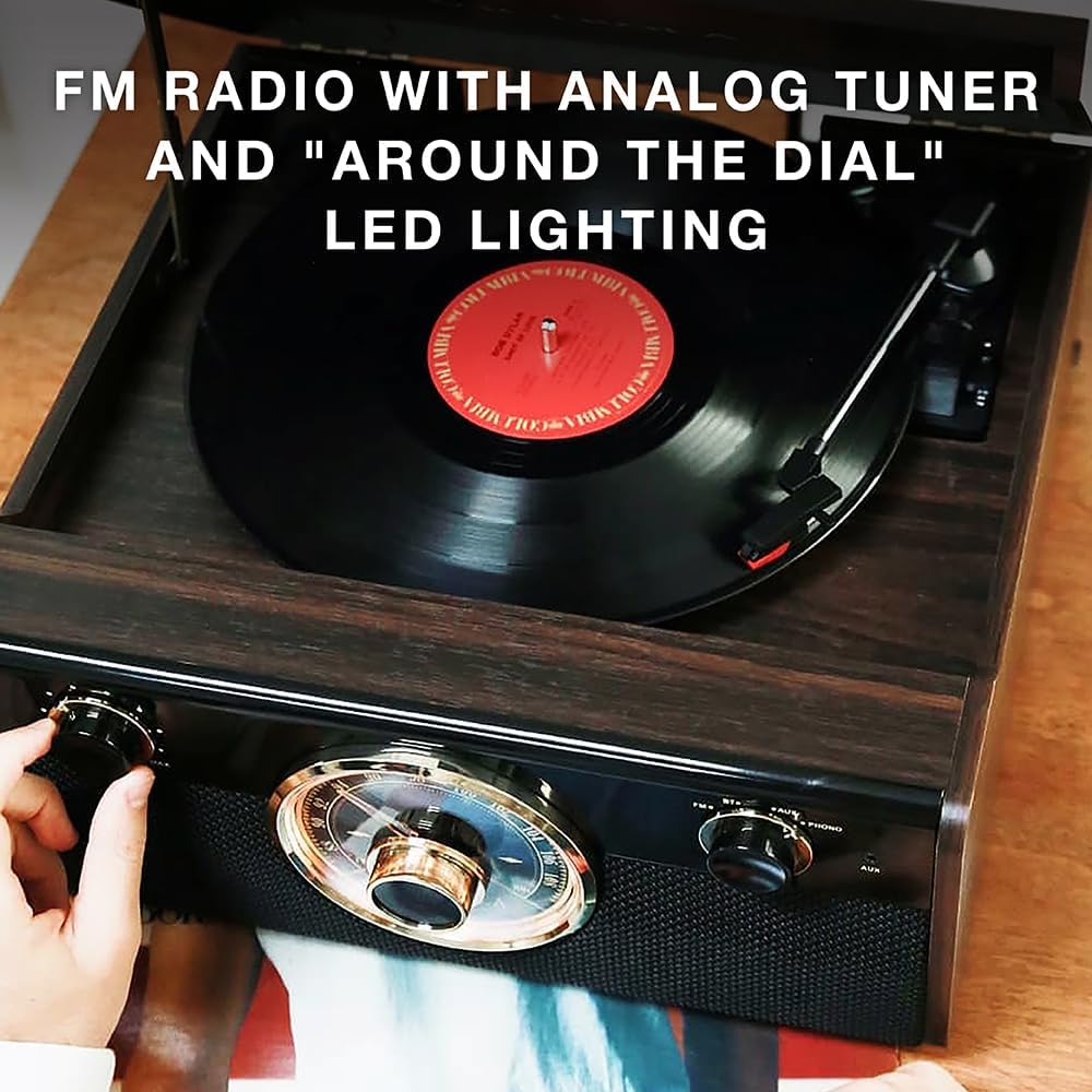 THREE SPEED BELT-DRIVEN TURNTABLE – This 3-speed (33 1/3, 45, 78 rpm) record player features UPGRADED PREMIUM SOUND QUALITY with minimum vibrations. It is perfect for your living room, bedroom or office and a great choice for vinyl lovers