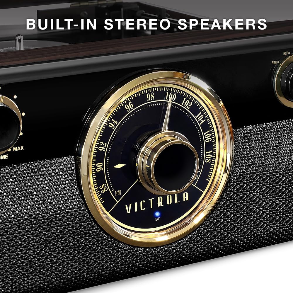 Victrola Metropolitan – 4-in-1 Bluetooth Record Player & Multimedia Center – 3-Speed Belt Driven Turntable with Built-in Speakers, AM/FM Radio, Wireless Music Streaming, Aux and RCA Outputs (Espresso)