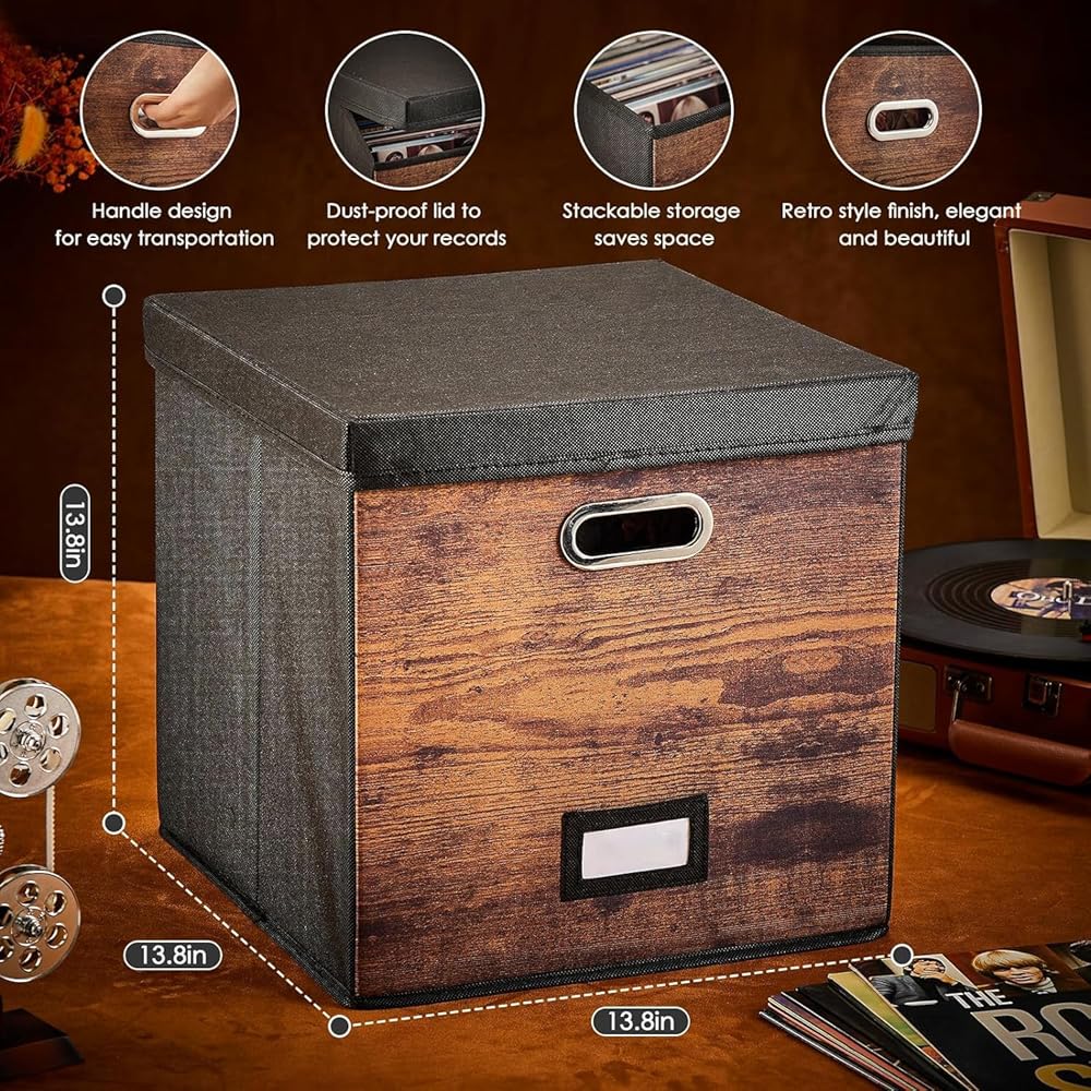 【Vinyl Record Storage Box Size】record crates for vinyl size is 13.8x13.8x13.8 (inches), record storage box can hold more than 100 vertically placed 12-inch vinyl record storage, vinyl record box makes the most of your space.
