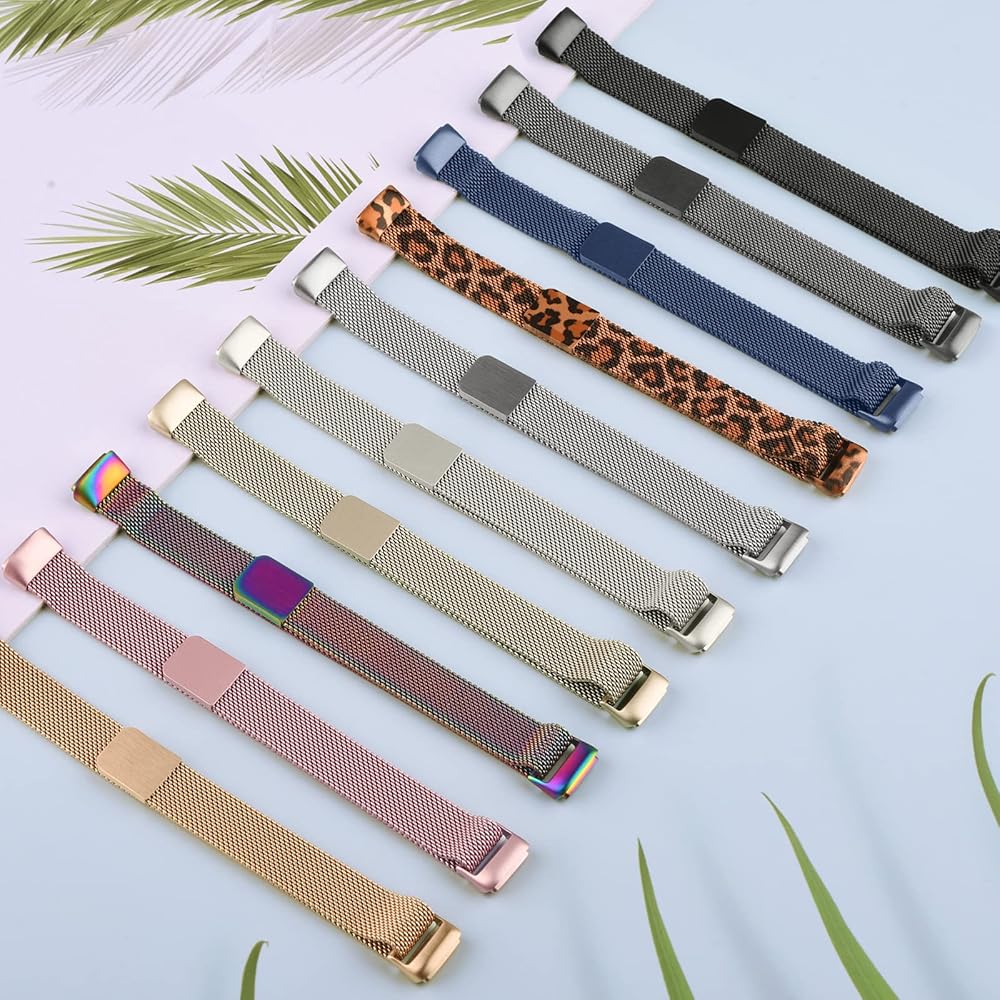 Meliya 2 Pack Metal Bands Compatible with Fitbit Luxe Bands Women Men, Stainless Steel Metal Mesh Loop Adjustable Magnetic Wristband Replacement Straps Compatible with Fitbit Luxe Fitness Tracker