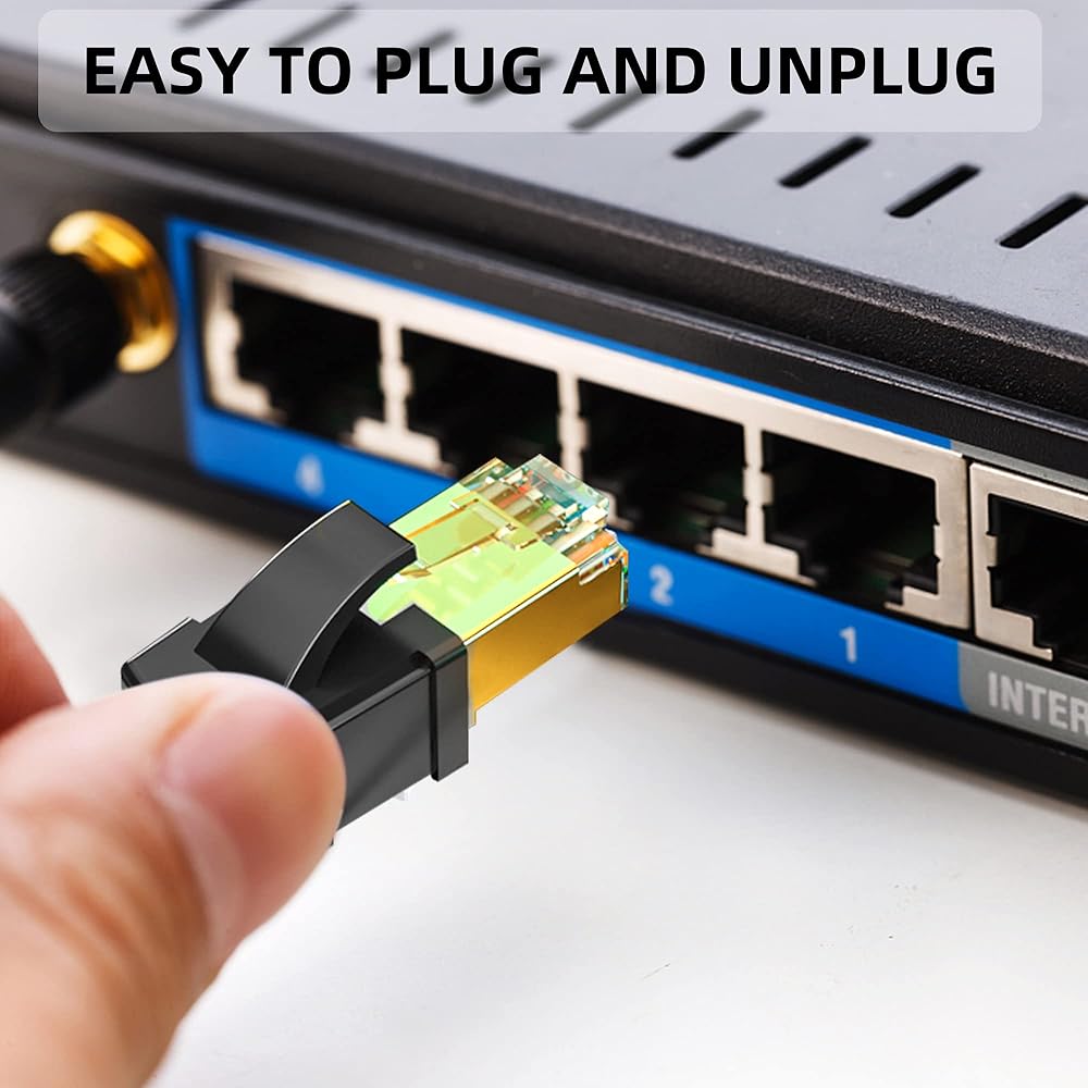 24K gold-plated connectors and 8P8C gold-plated contacts provide faster and more stable speeds, and the experience of Cat8 cable will be more pleasant.