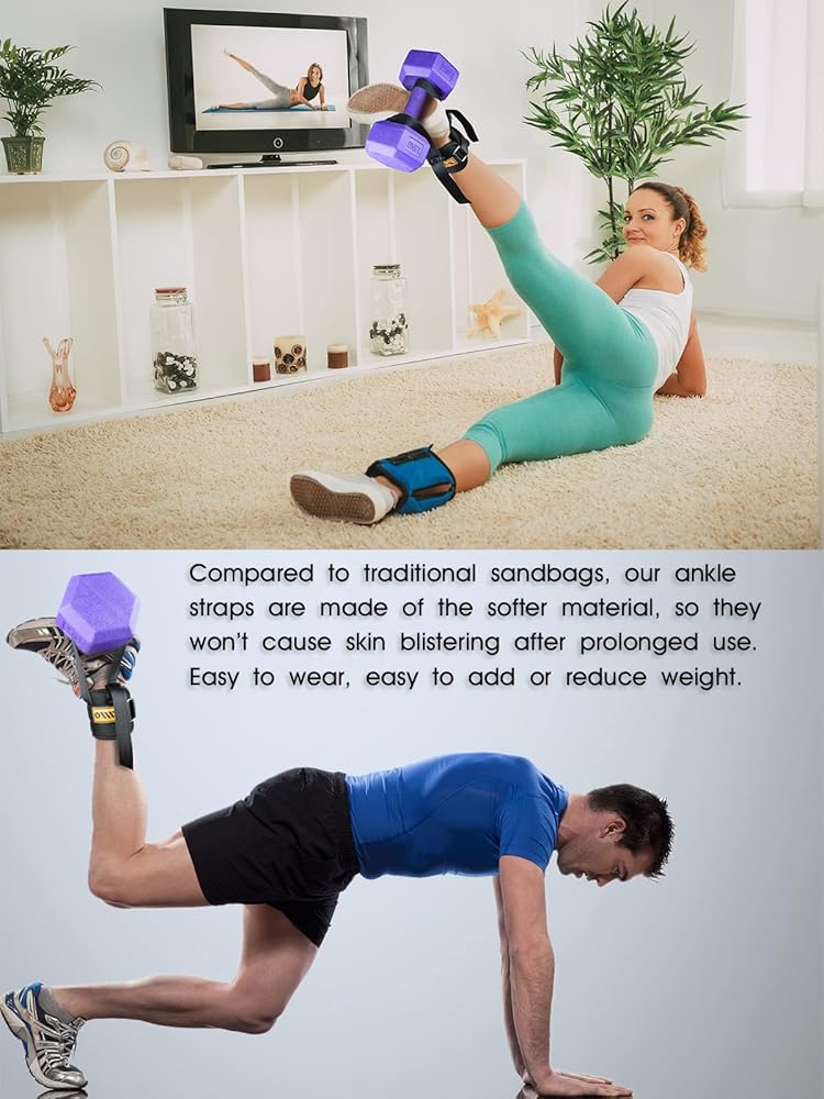 BRAND-NEW DUMBBELL FOOT ATTACHMENT DESIGN: The ankle strap design that fixes dumbbells on your feet allows you to easily exercise the muscles of the legs and hips at home, get rid of the traditional heavy machines, make your home more tidy and save your money for other things.