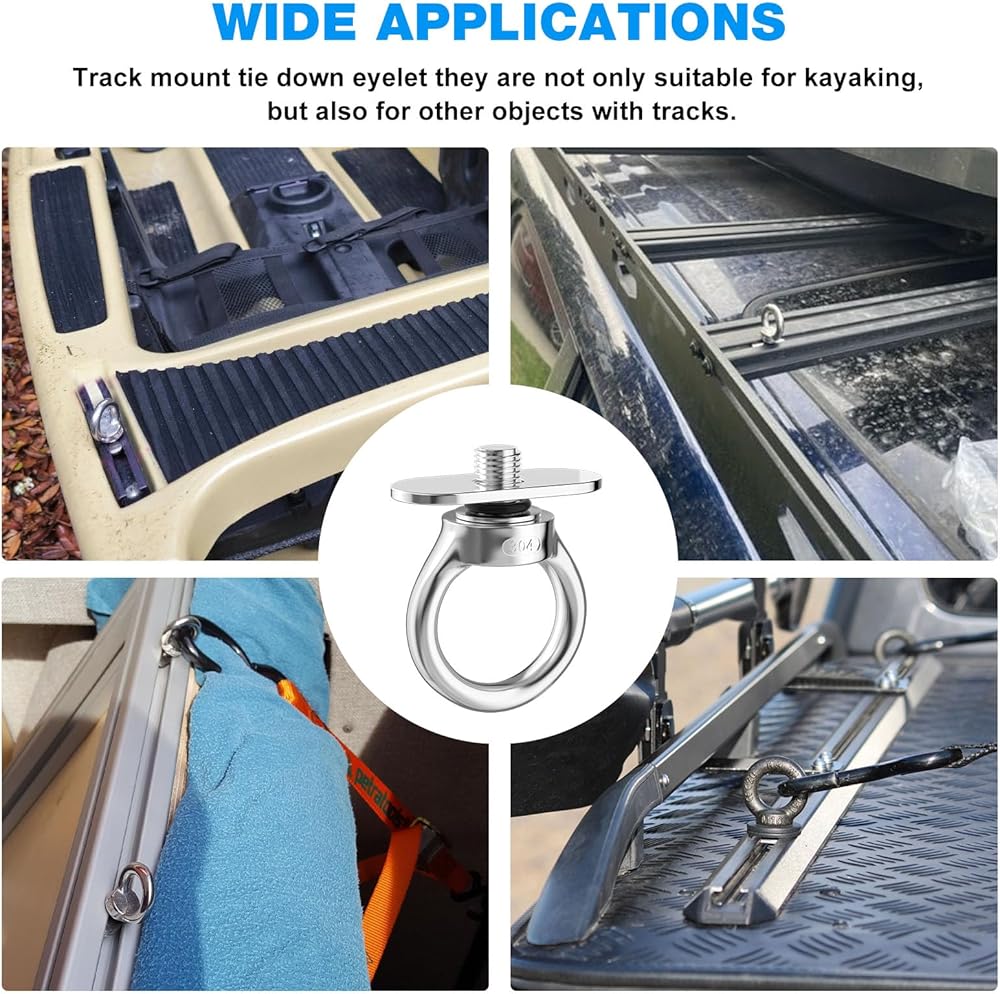 【Kayak Track Mount Eyelet】Compatible with most track systems,for kayak, boat, canoe or any other watercraft,These eyelets are easy to install on the track.(Tie Down Eyelet Only No Track included).