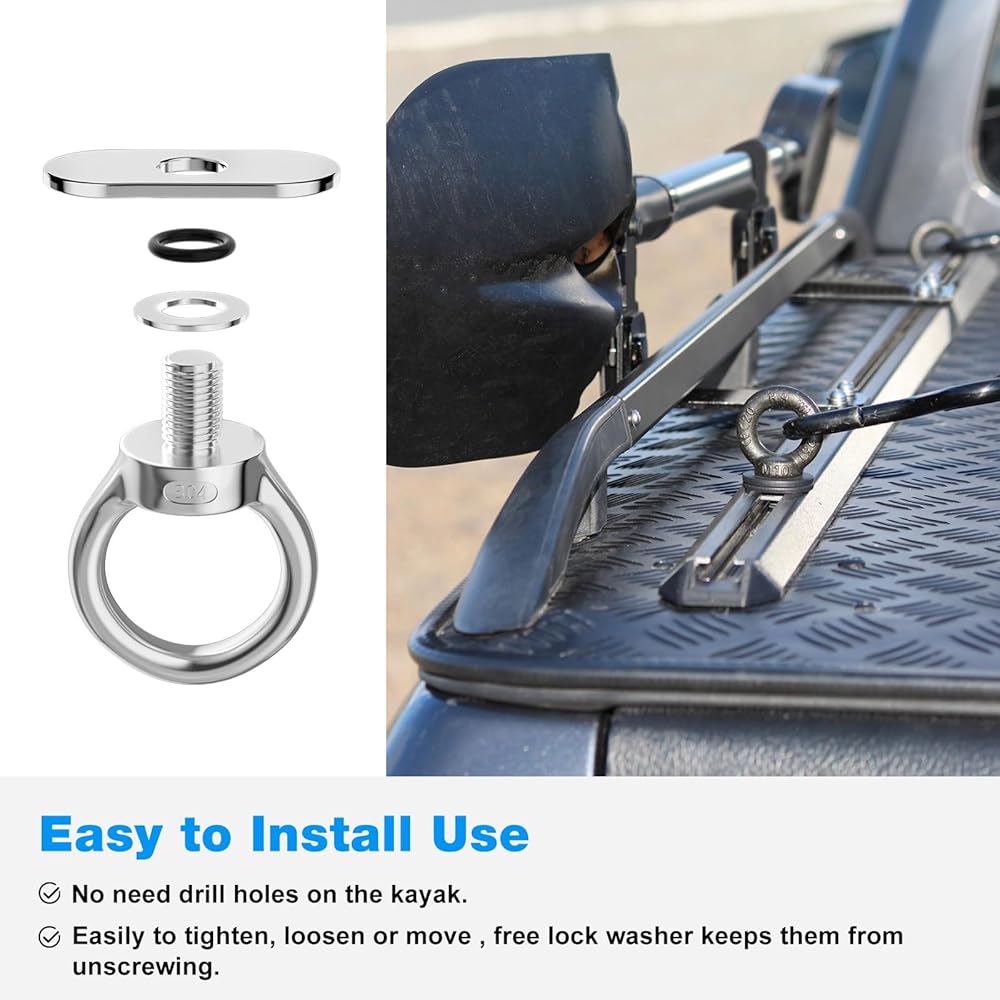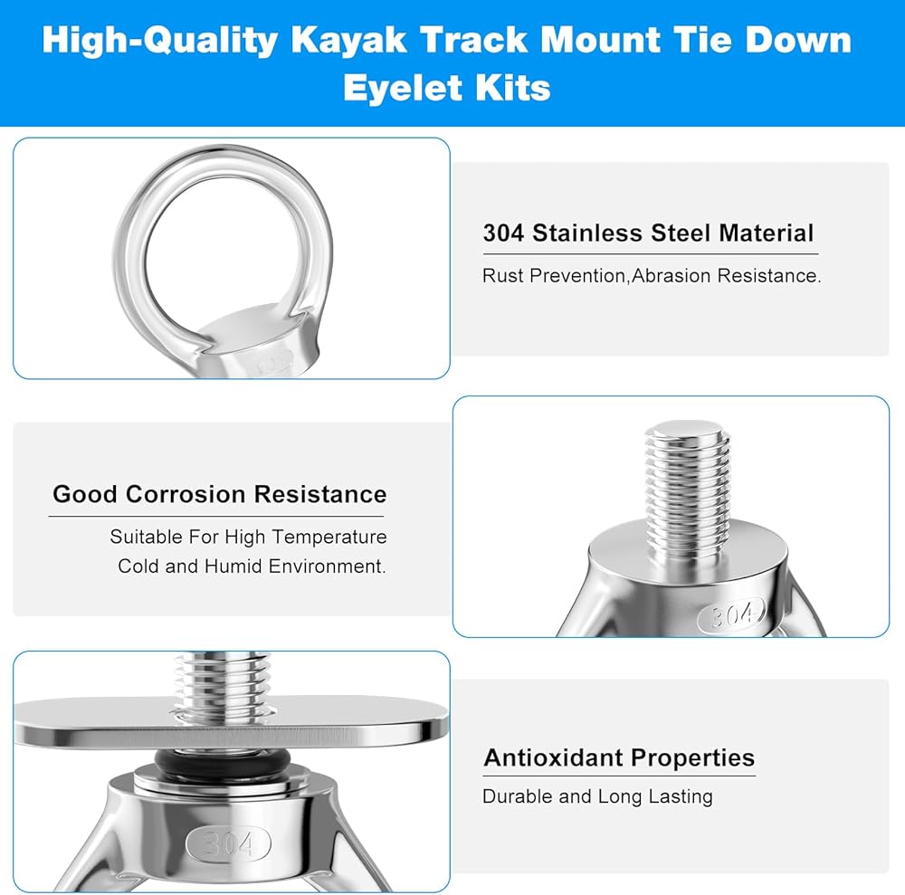 【High-Quality】Kayak track mount eyelet kits made of high-quality 304 stainless steel,rust prevention,abrasion resistance.It has good corrosion resistance and oxidation resistance in harsh environments such as salt water and cold weather,high temperature,high humidity areas, durable and can be used for a long time.