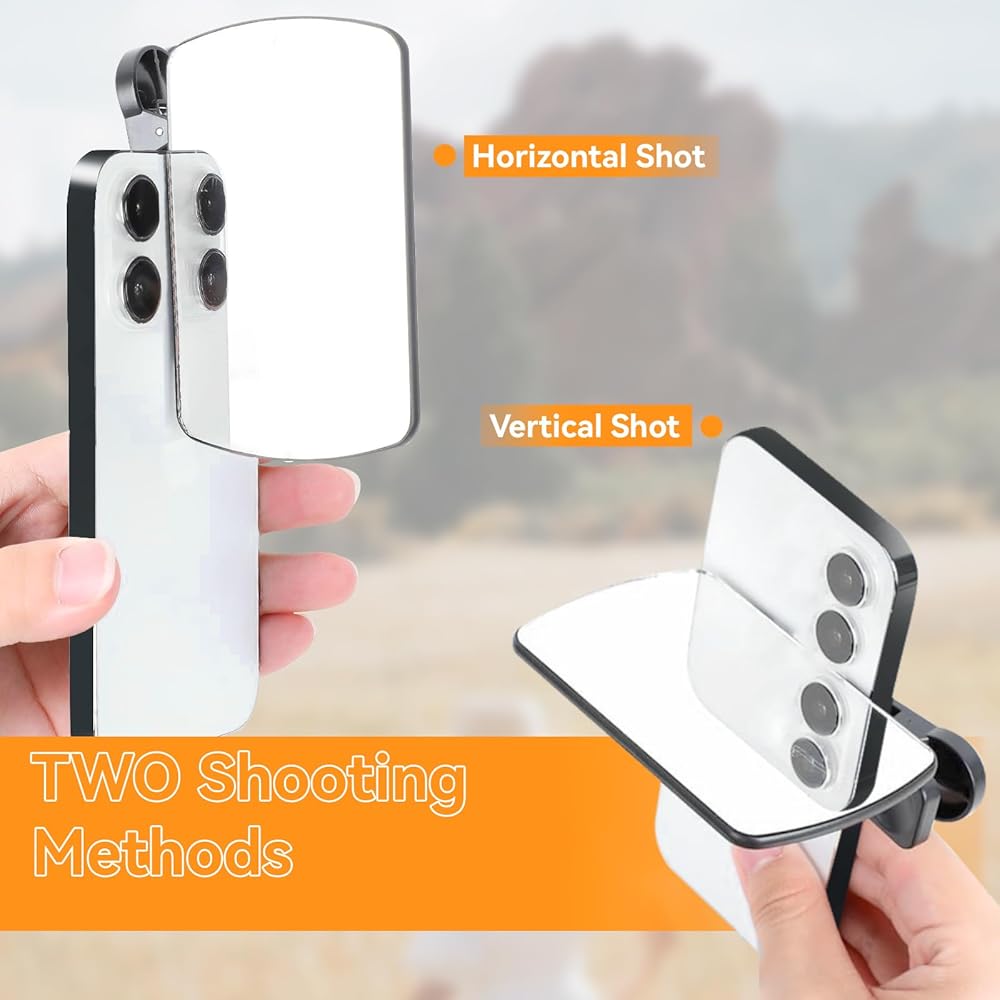 ⭐Mirror Reflection For Phone Camera: The mirror provides two unique shooting angles, vertical and horizontal, for you to take creative selfies and create more high-definition fashion pictures.