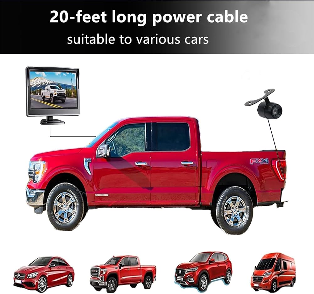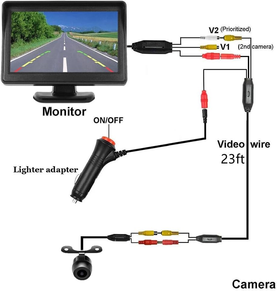 Stable Signal Transmission with 23ft Power Cable: The 4.3 inch monitor and rear camera are connection by power cable with RCA connectors, which can transfer stable and real-time picture to monitor, much better than wireless transmission.