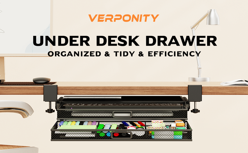 【Clean & Organized Look】: Our under desk drawer slide out offers a sleek and clean look that enhances your workspace's aesthetics. With the maunal instructions, it will help you get more about the Verponity desk organizer. Any questions about our office supplies for desk, please feel free to contact us and we will serve you within 24 hours!