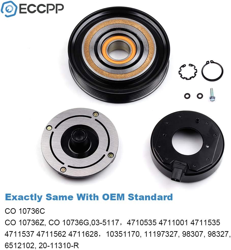 ⁂❆BEST FEATURE - The three main parts of the compressor clutch assembly are the coil magnet, the pulley, and the clutch plate. ECCPP compressor clutch assembly are designed and manufactured to meet or exceed the standards of the original equipment components we are replacing