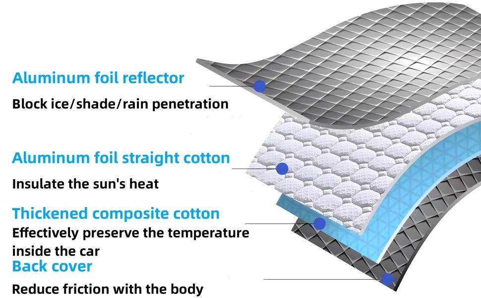 FOUR-SEASON PROTECTION: The vehicle snow shield uses a four-layer thickening design to withstand various natural disasters. It is waterproof, snow, freeze, scratch, UV resistant, and protects vehicles from rain, ice, dust, and even animal droppings.
