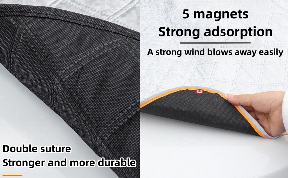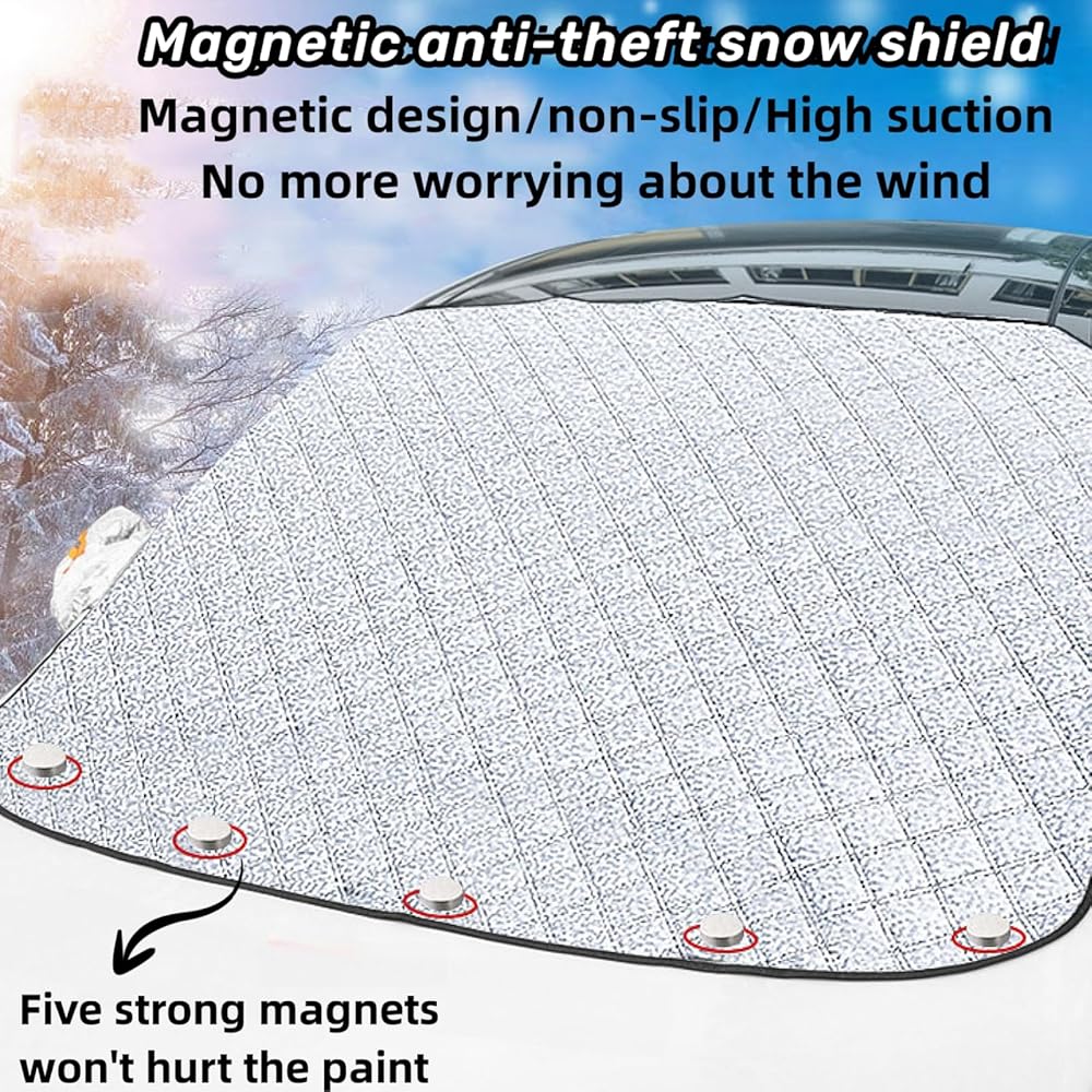 EASY INSTALLATION:Our car snow cover can be installed in just ten seconds, with five magnets adsorption frost cover, widening and thickening, can prevent winter morning snow and ice damage to your car, saving you the time to deal with the snow on the front windshield.