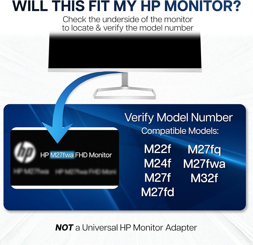 VIVO Quick Adapter Solutions - Please be sure and check the model of your monitor before ordering!! This bracket is designed to fit only the following HP M-Series Models: M22f, M24f, M27f, M27fd, M27fq, M27fwa, and M32f. --Patent Pending--