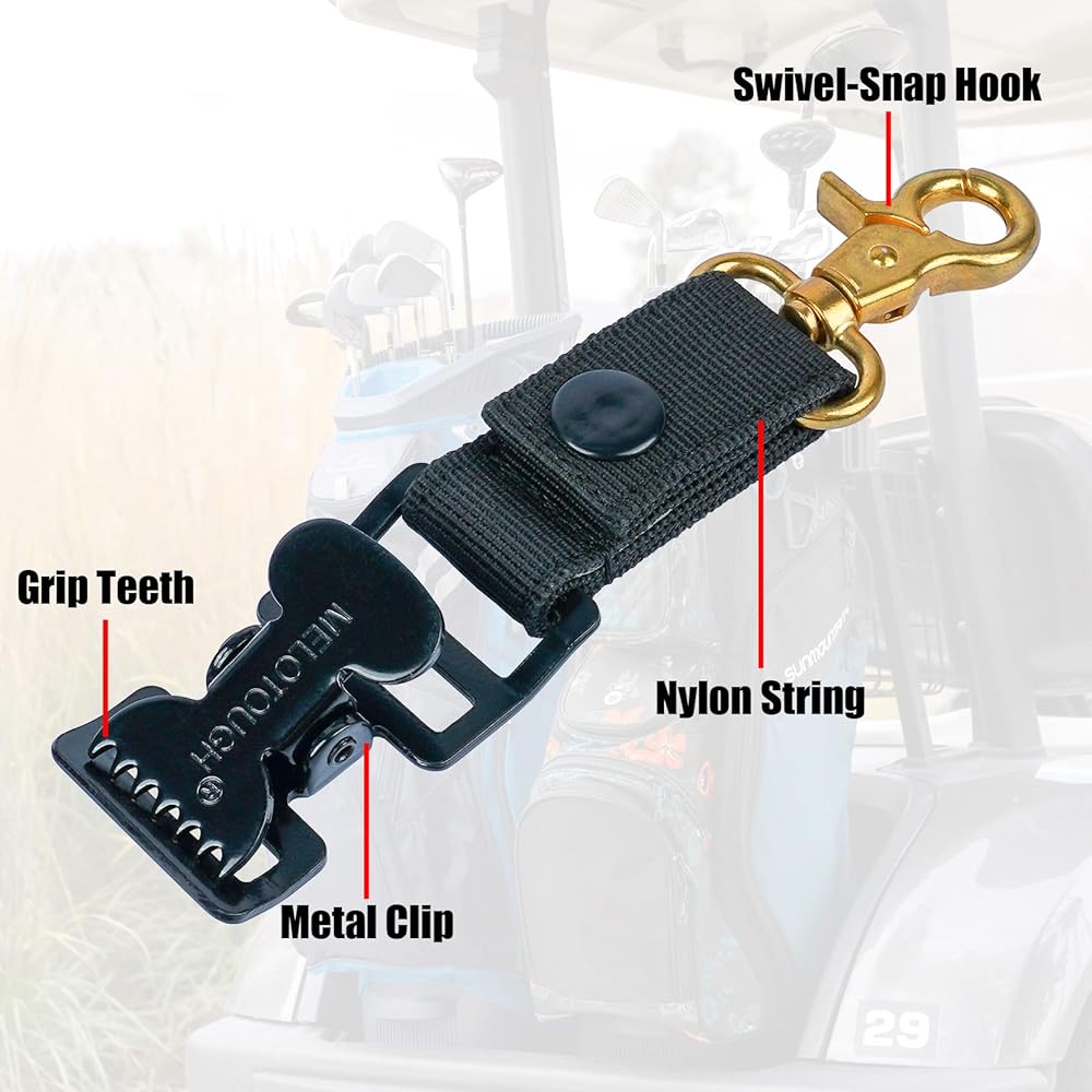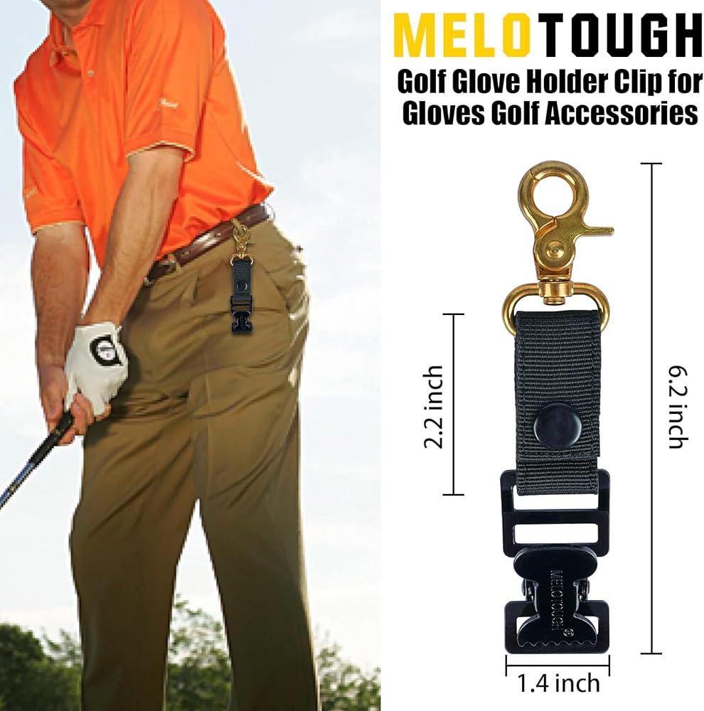 ✅BUILT TOUGH TO LAST LONG---Our metal golf glove clip holder made of heavy-duty 1” wide nylon, a powerful alligator clip that will secure your Golf gloves, and an industrial strength black, swivel-gold snap hook ,unlike plastic clips that break suddenly.