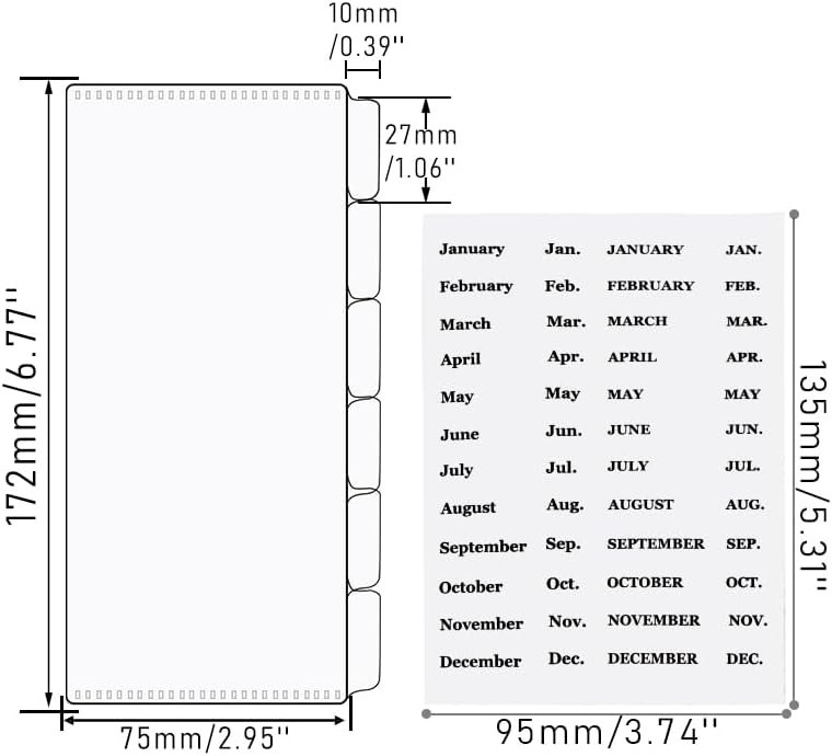 Cash divider with pocket size is 75mmx172mm(2.95"x6.77"), and the index tabs size is 27mmx10mm(1.06"x0.39"), pocket size is suitable for store money, bills and easy to carry