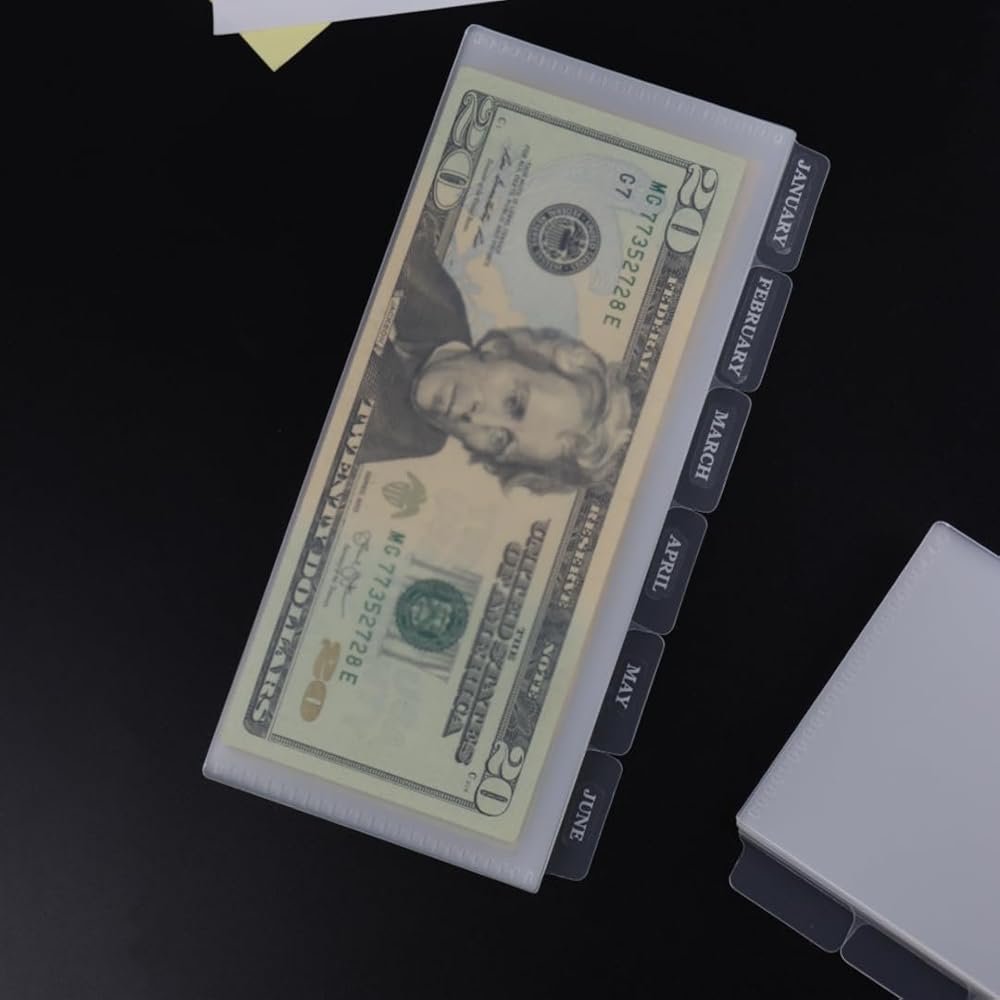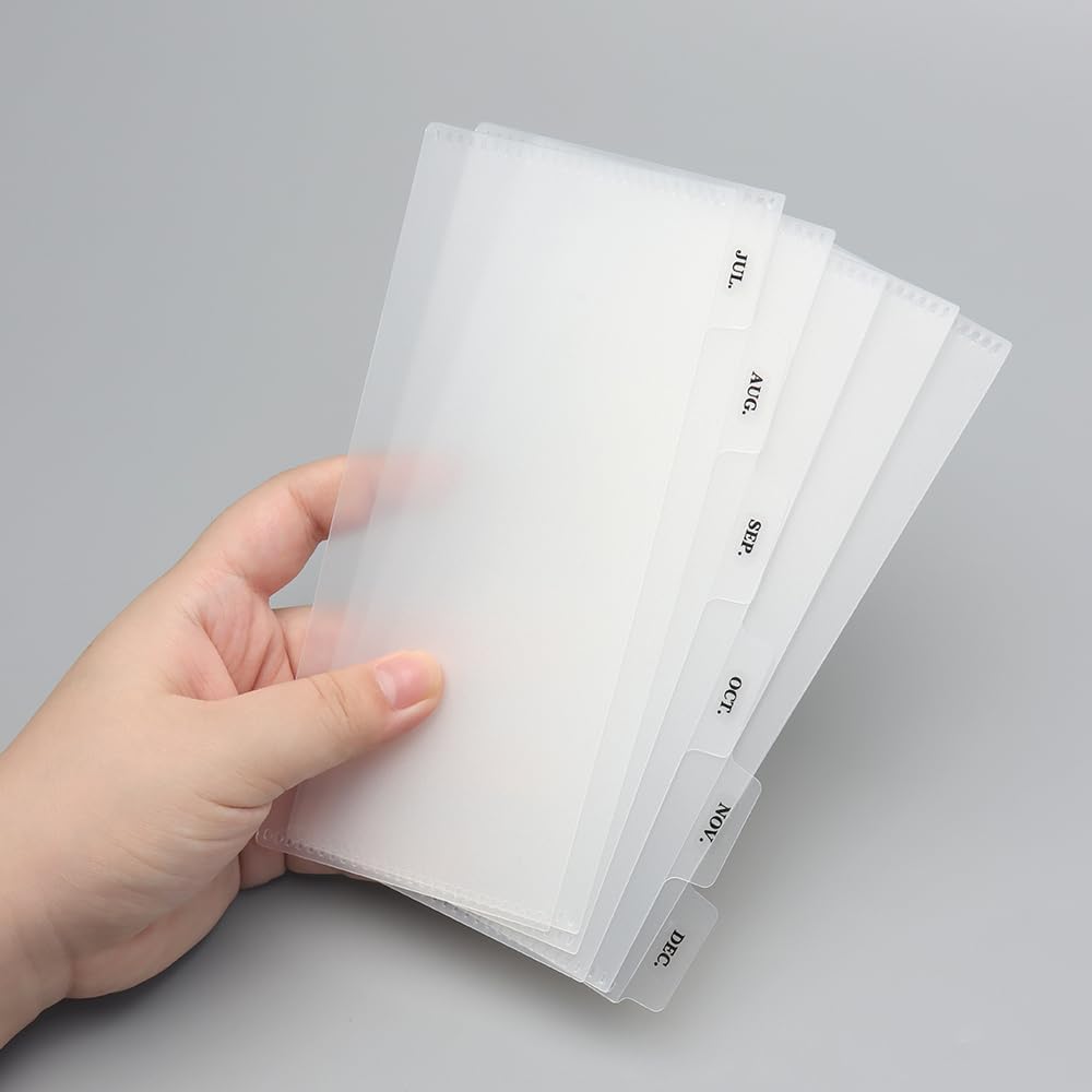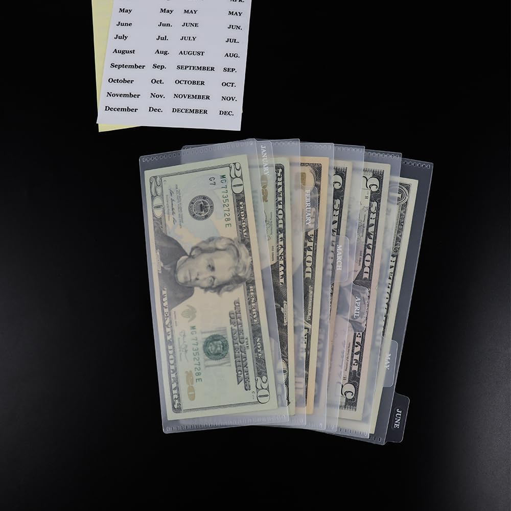 Package is include 12pcs translucent cash divider with pockets and 2pcs monthly tabs sticker(black/white font)