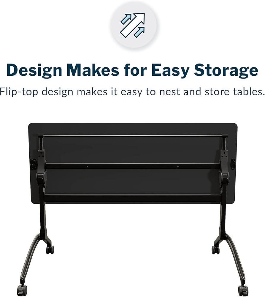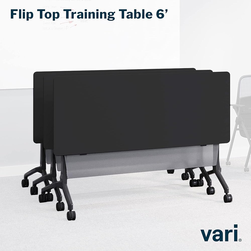 Vari Flip Top Training Table 6' - Foldable Top and Rolling Casters for Easy Storage and Flexibility - Included Linking Brackets to Connect Tables Together - (Black)