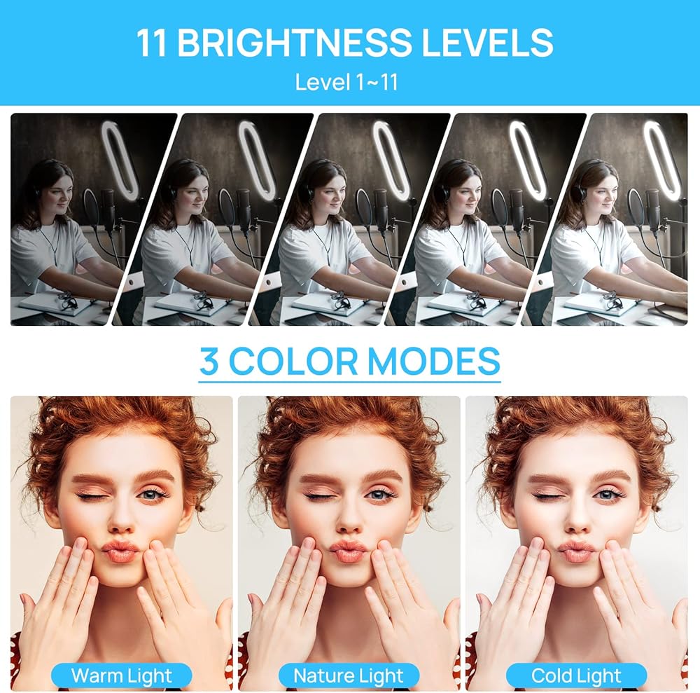 Dimmable Ring Light: With 11 brightness levels and 3 color options, QIAYA will be a simple lighting solution for your selfie photos, home made videos, online product displays, hair salons, social media marketing, TikTok and YouTube videos.