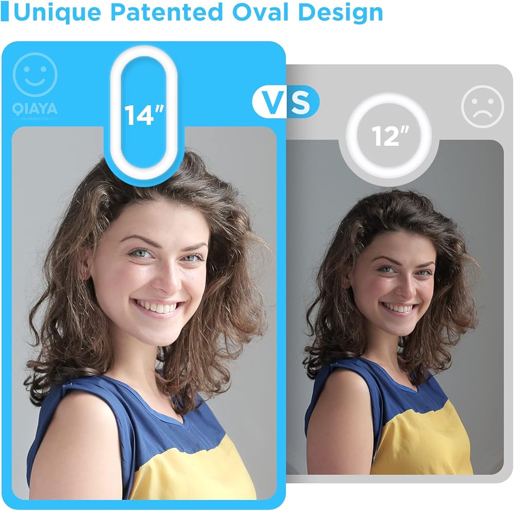 Unique Patented Design: Sleek and modern, QIAYA is not the average looking ring light. It's an oval shape that projects the light more evenly over the entire space and offers soft, radial illumination that conceals skin imperfections.
