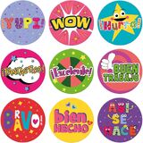 REWARD LANGUAGE LEARNING — These encouraging stickers are specifically designed for kids learning Spanish. Provide a fun and encouraging way to reward students studying, or bilingual students on the journey to mastering the language. Celebrate their progress with these classroom motivational stickers for students