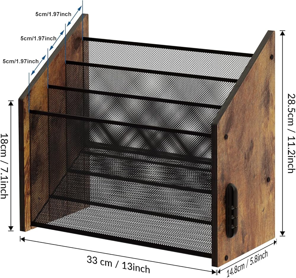 【LADDERED STORAGE】Triple Ladder File Holder can fit a amount of file and letters. Laddered distribution for clear visibility, for easy sorting and access to paper, documents, bills, mail, magazines, etc. The space at the bottom of the back is also a good place for sockets, giving you a tidy desktop.