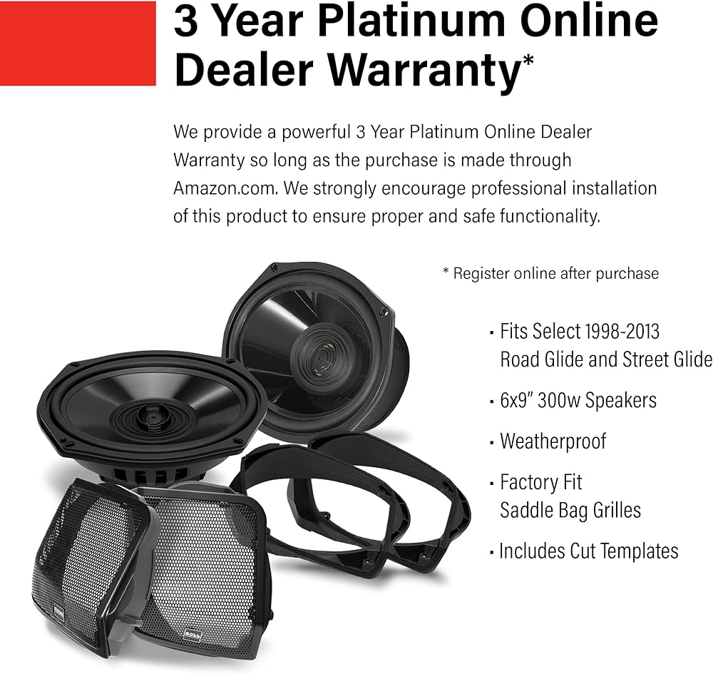 BOSS Audio Systems BHD98 Harley Davidson 6 x 9 Inch Saddlebag Speaker Kit – Fits Select 1998-2013 Road Glide and Street Glide Motorcycles, 300 Watts of Power Per Pair, Full Range, 2 Way, Sold in Pairs