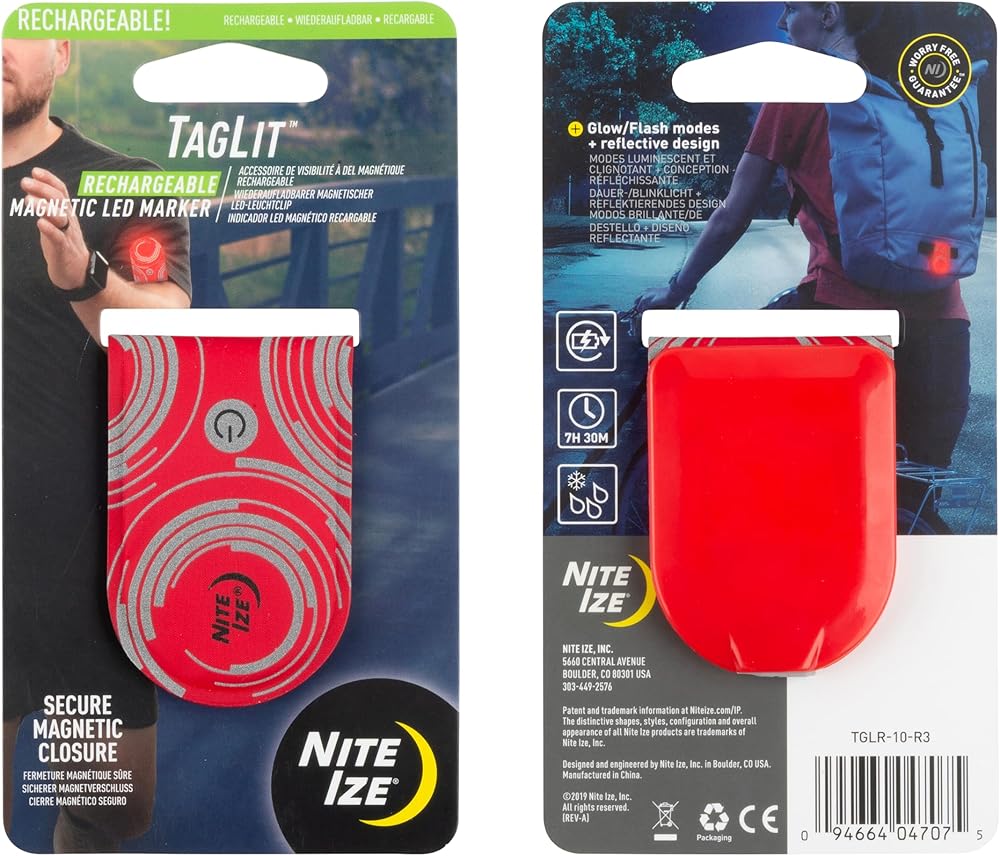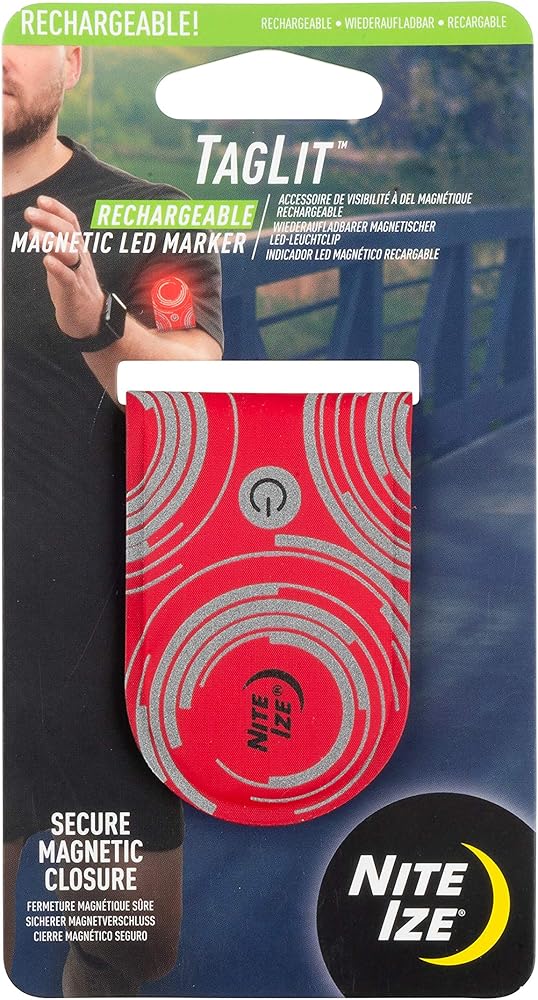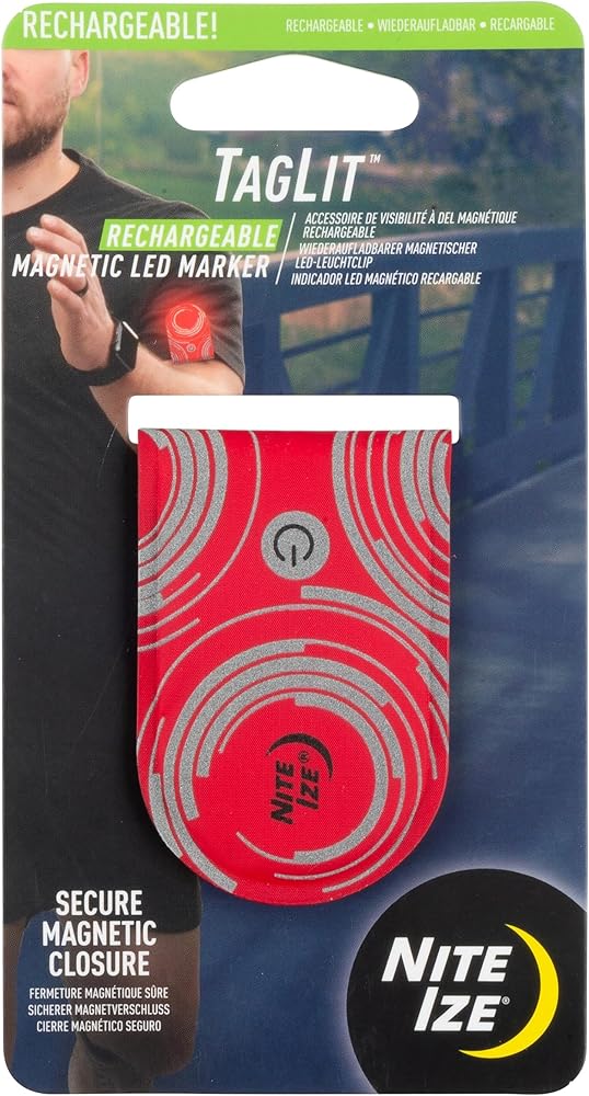 Nite Ize TagLit Rechargeable Magnetic LED Marker - Safety Light - Durable LED Tag Light for Running & Walking at Night - Rechargeable & Magnetic Safety Gear - Red