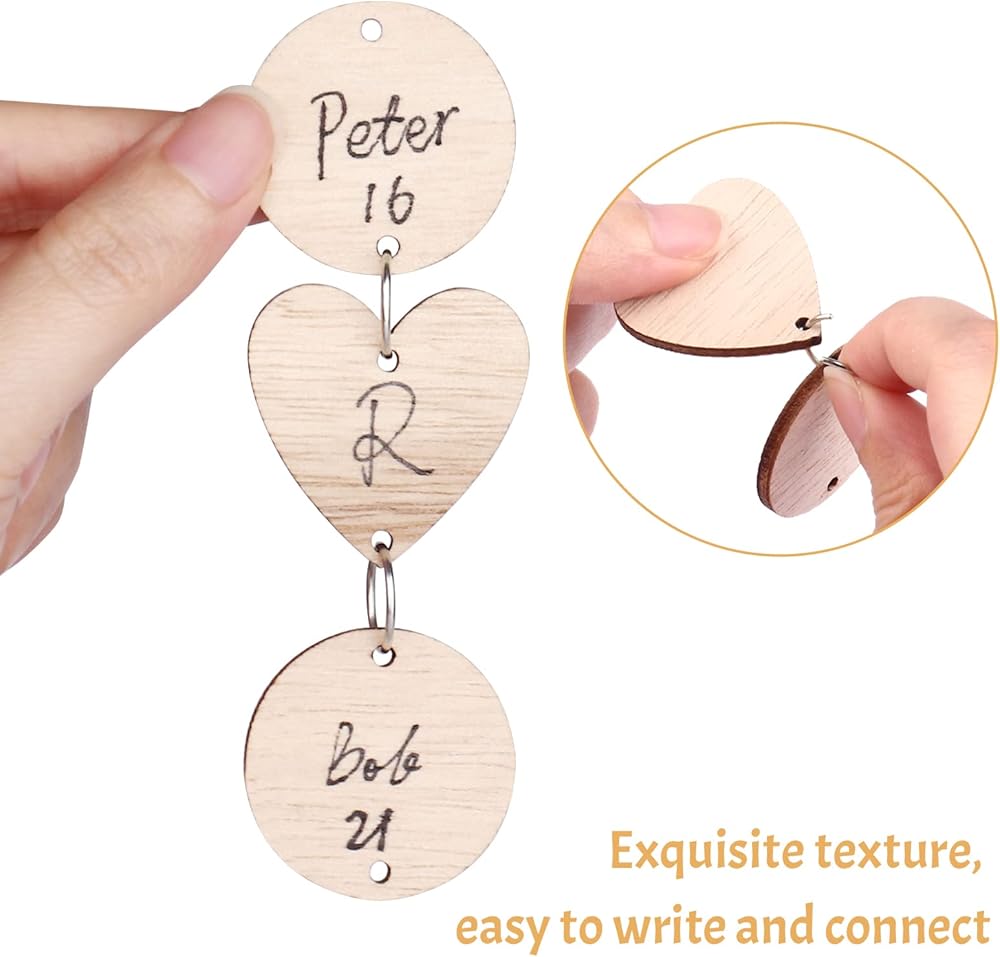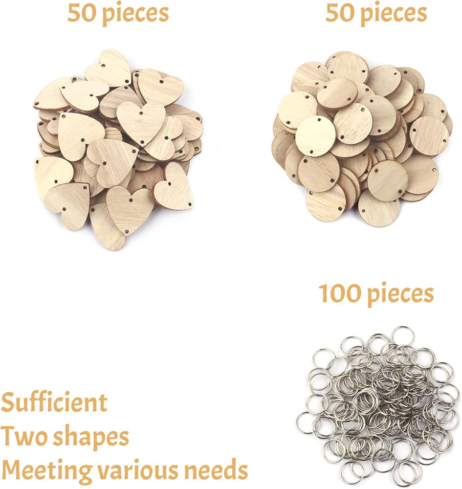 You will receive: The package includes 50 pieces wooden circles and 50 pieces wooden heart writable tags, as well as 100 pieces key rings connectors. The 2 kinds of shapes of labels can meet your various needs and these key rings can help you spark your creativity to easily DIY the crafts you want.