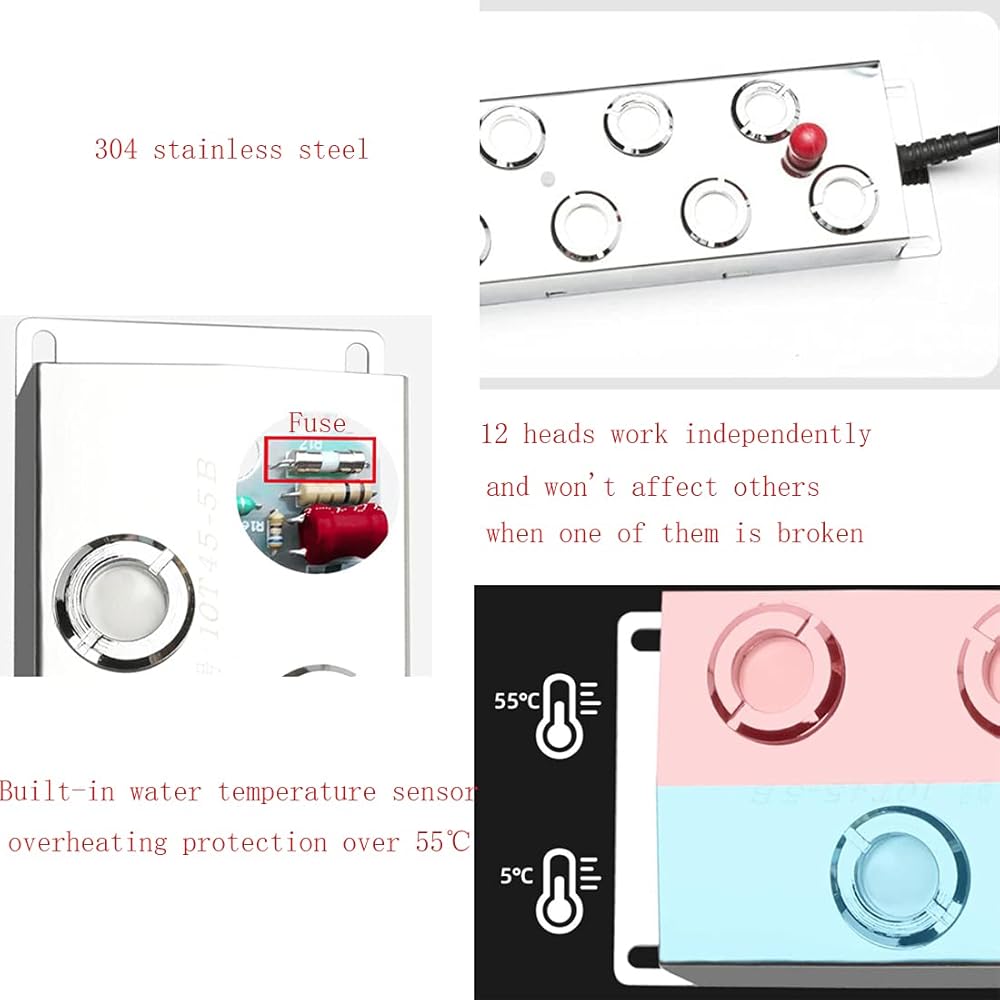 【Reasonable Design】12 heads work independently and won't affect others even one of them is broken; built-in water temperature sensor for overheating protection over 55℃; water shortage protection.