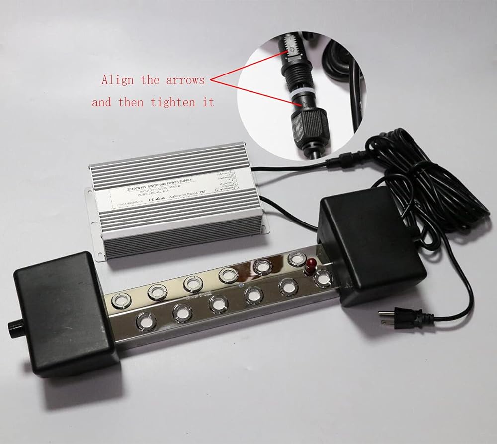 【Great Value Set】You will get a 12-head ultrasonic mist maker, a 110V 400W power supply and a float which is needed for mist maker when the water depth is more than 8cm.