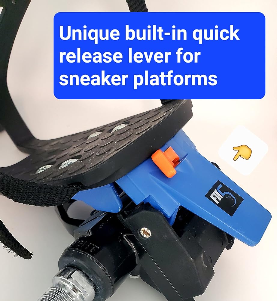Innovative Quick-Release Convenience: Fit 5 pedals feature an ingenious quick-release lever for easy removal of platform adapters, allowing seamless switching between regular sneakers & cycling shoes. Eliminates the common difficulty in removing platform adapters found in most pedals.Enables a broad range of riders to use a single bike without concerns about clips/cleats & shoe compatibility. Swiftly switch between Delta clips & sneakers without the need for any tools enhancing user convenience.