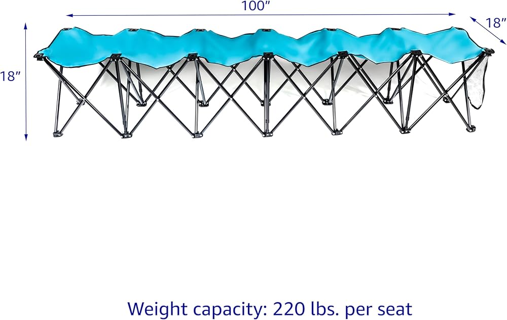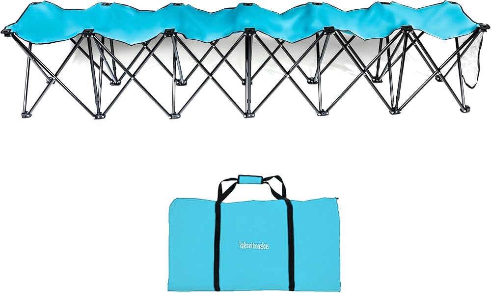 - Strong, durable, and lightweight portable six-person folding bench with steel frame