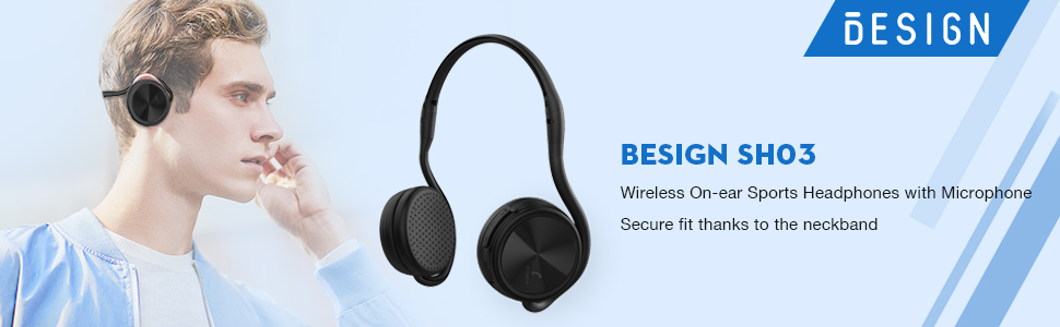 BESIGN SH03 Sports Bluetooth 5.0 Headphones, Wireless Stereo Earphones for Running with Mic for Wireless Music Streaming and Handsfree Calling, Up to 25 Hours Music time