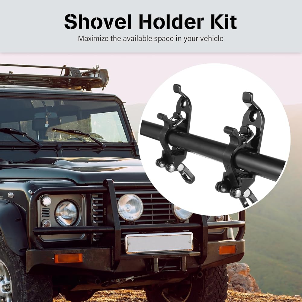 【Streamlined Organization】The package is inclusive of a comprehensive clamp mounting kit, featuring 2×clamps and 4×fixing screws. Effectively organize your overlanding equipment, such as shovels, axes, and recovery boards, with the help of this adaptable shovel rack crafted from high-quality materials.