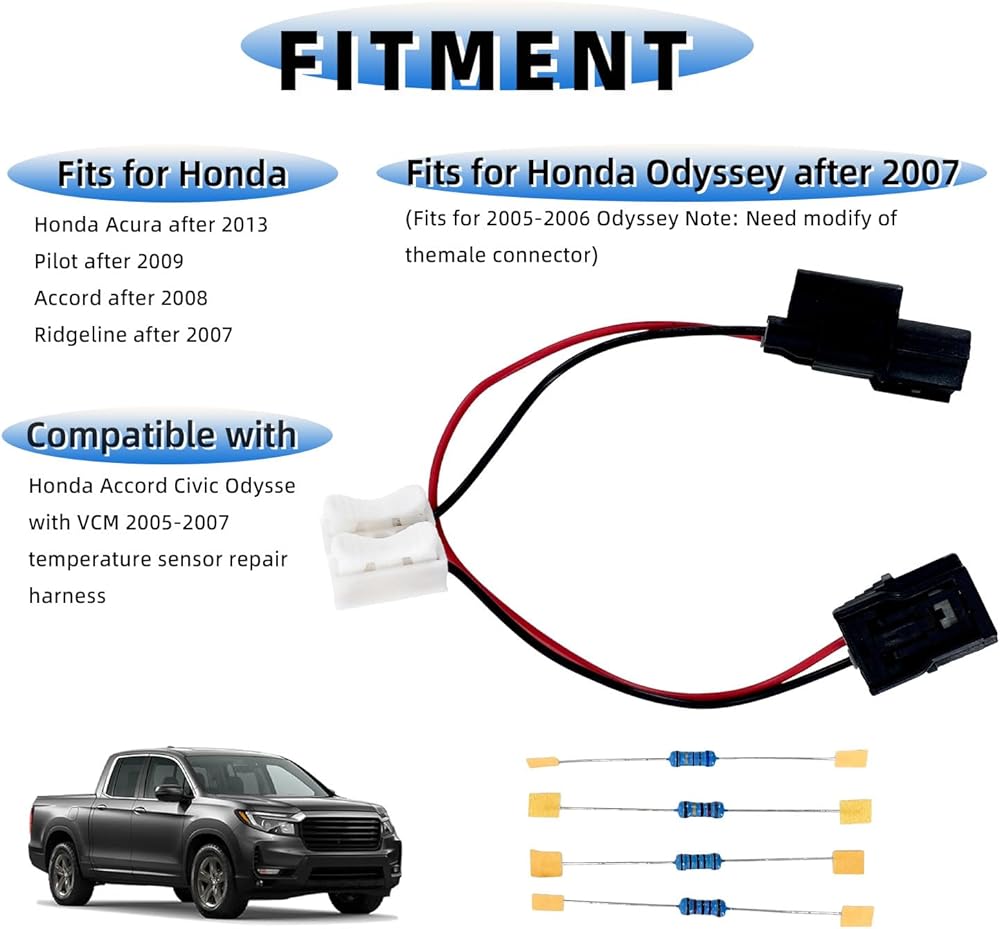 [Fitment] Fits for Honda Odyssey after 2007. (Fits for 2005-2006 Odyssey Note: Need modify of themale connector). Compatible with Honda Accord Honda Civic Honda Odysse with VCM 2005-2007 temperature sensor repair harness.