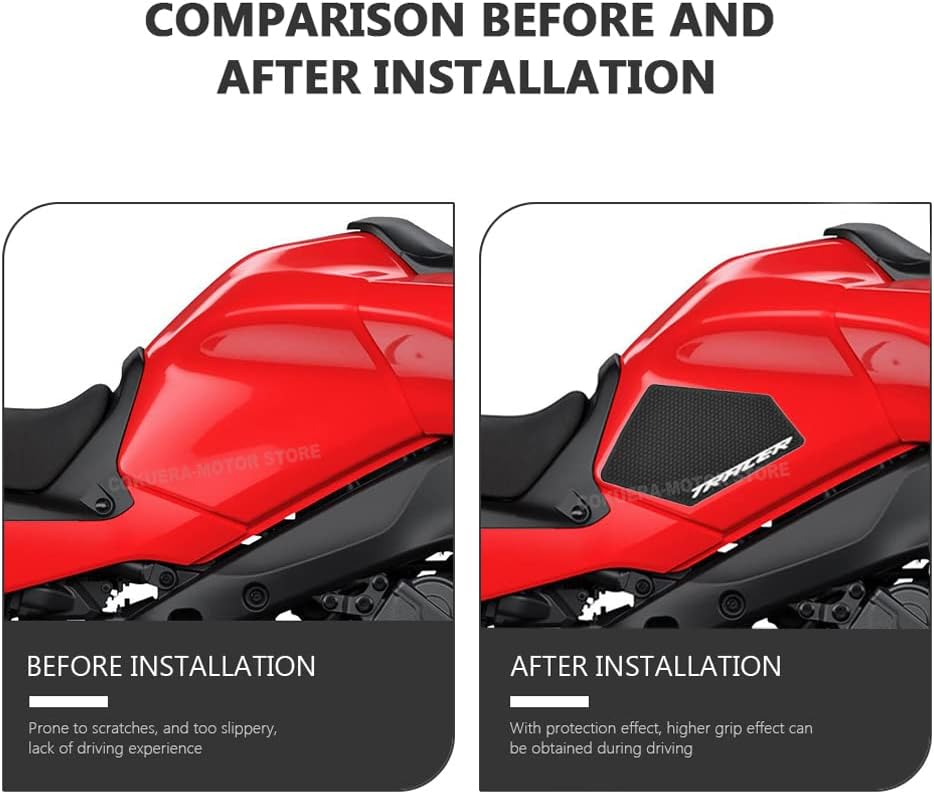 - Features:Tank side pads for optimum protection against scratches or wear marks on the tank knees Increased and better grip of the bike