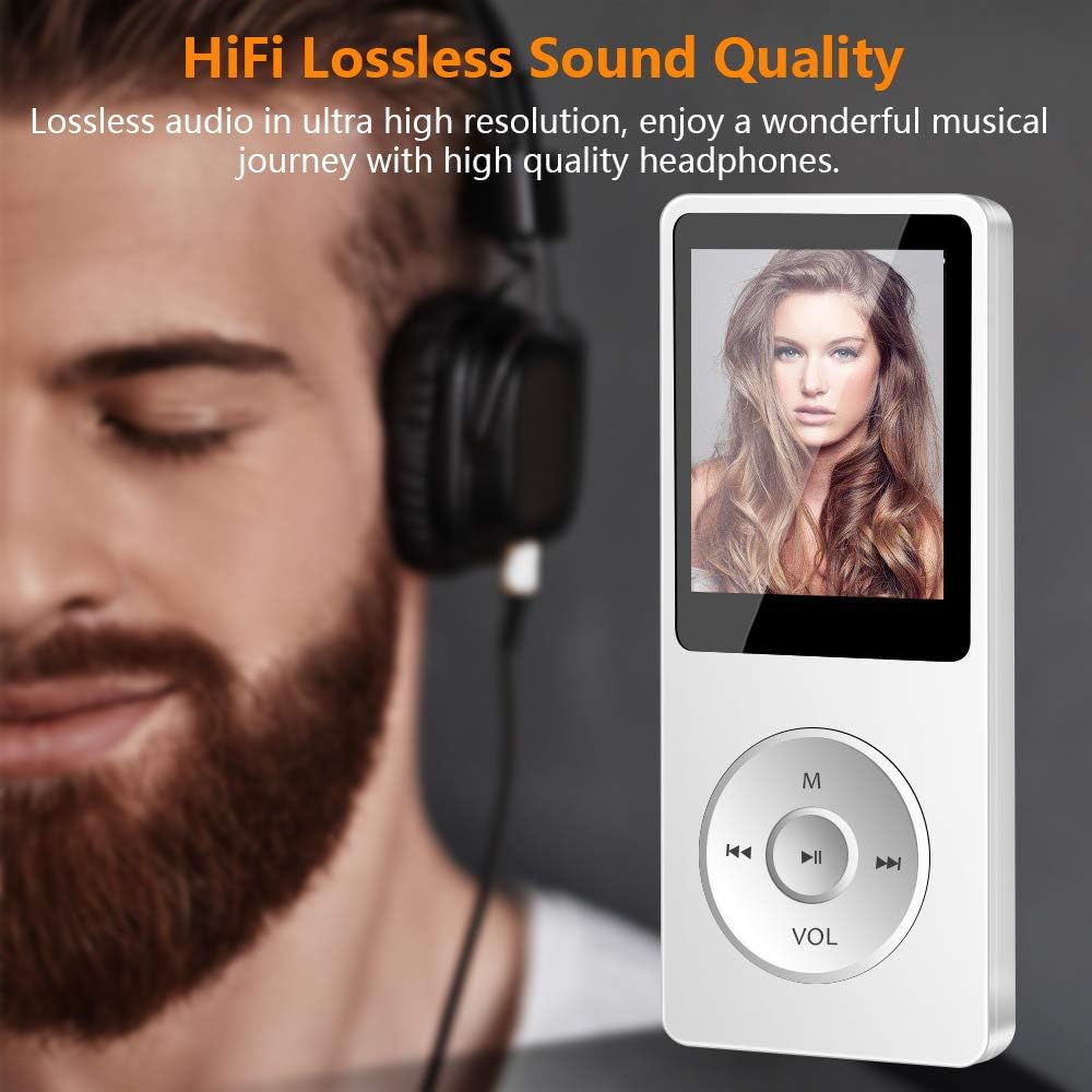 【32GB Large Storage】The portable MP3 player comes with a 32GB micro SD card and support up to 128GB(not included). Support Multiple Audio Formats, including MP3, WMA, APE, WAV, FLAC,etc.