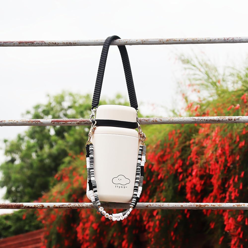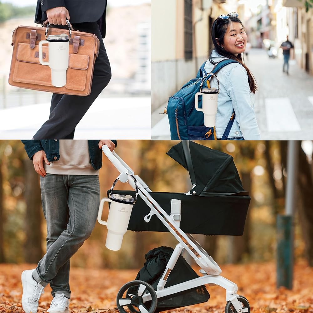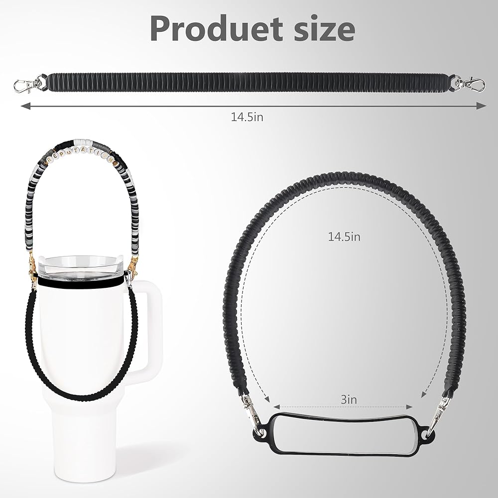 Black Gray Stanley Cup Holder with Strap, Silicon Water Bottle Handle, Carrier, Lanyard, Holder with Strap, Reputation Beads Stanley Handle, Tumbler Suitable Stanley Cup Accessories 8-40oz