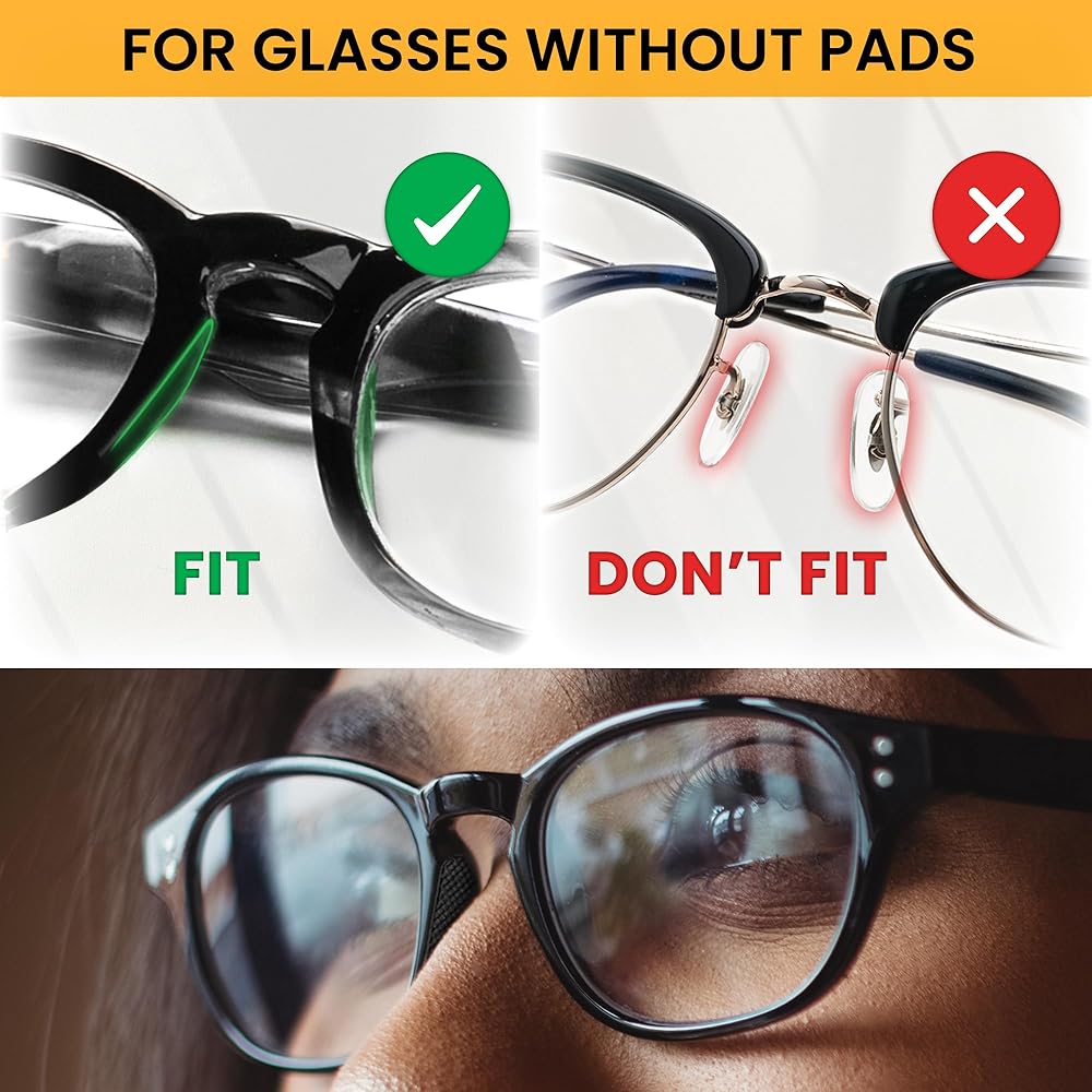 Super-Strong Adhesive Base: prevents the sliding of eye glasses nose pads non-slip, providing excellent traction even in hot climates and on moist skin. Meanwhile, the silicone nose pads for eyeglasses remain soft and non-sticky