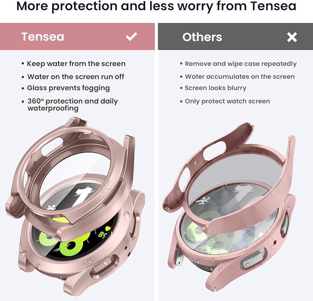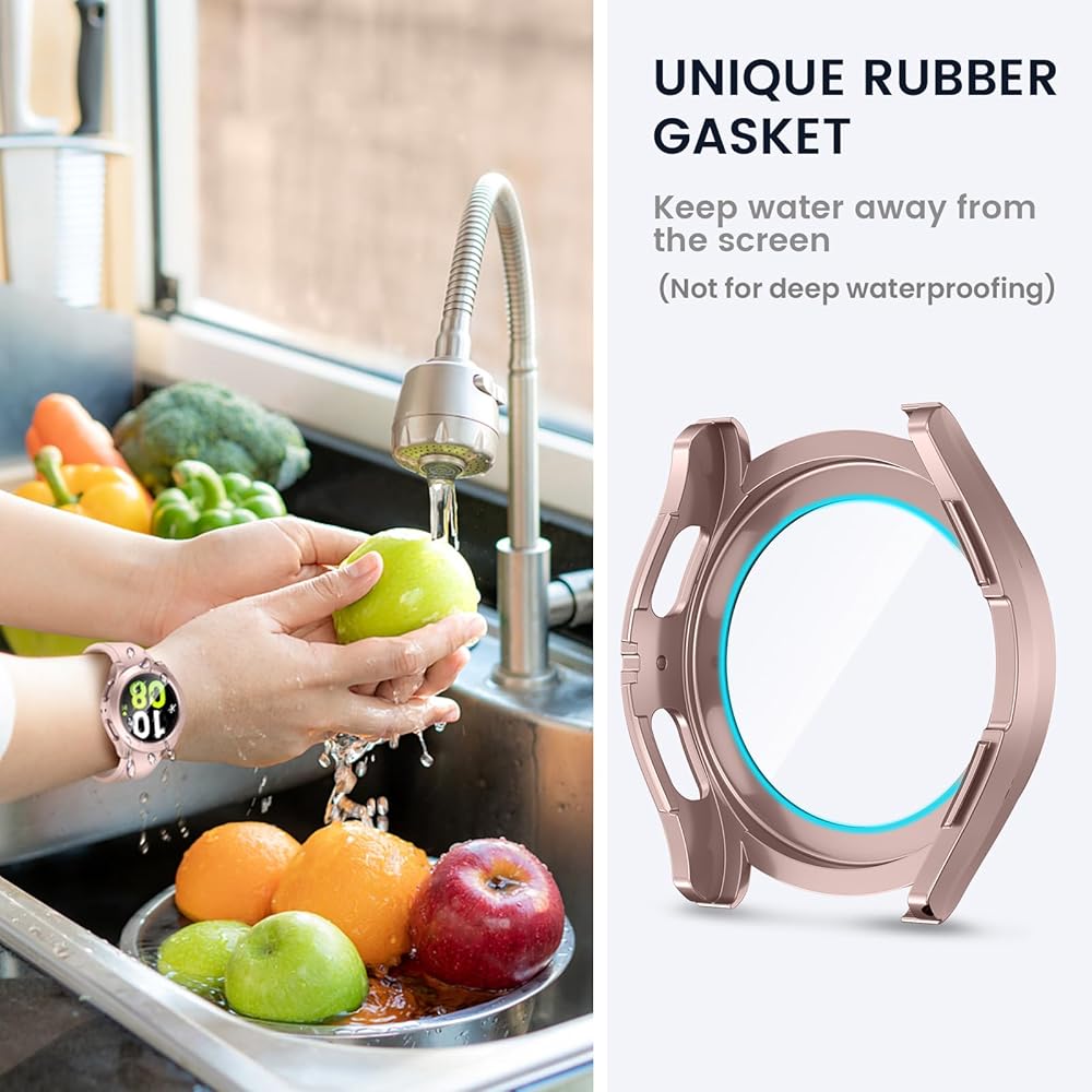 【Daily Waterproof】Tensea samsung galaxy watch5 & galaxy watch4 screen protector built-in seal ring to keep water away from screen. No worry about the water/fog/moisture enter the screen and affect the touch screen, which means you no longer need to remove the case and wipe the water repeatedly after showering, washing hands, exercising, rain, etc. [NOTE: Not suitable for deep waterproofing, such as diving and swimming, etc.]