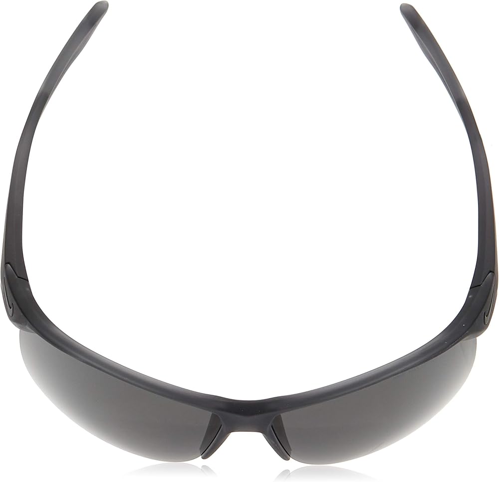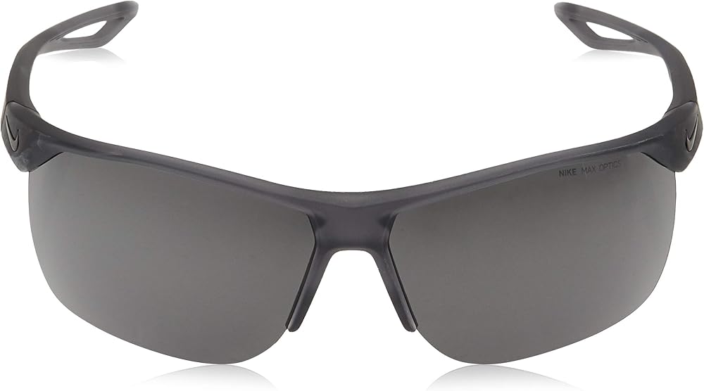 NIKE EV0934-061 Trainer sunglasses matte crystal anthracite/black, dark grey lens features NIKE max optics lens technology for precise visual information at all angles of view. The Trainer sunglasses have lightweight nylon frame for comfort and durability. There is auto-adjusting ventilated nose bridge for a customized fit and added grip. Cam-action hinges that snap firmly into place. There are interchangeable lenses available but must be ordered separately.