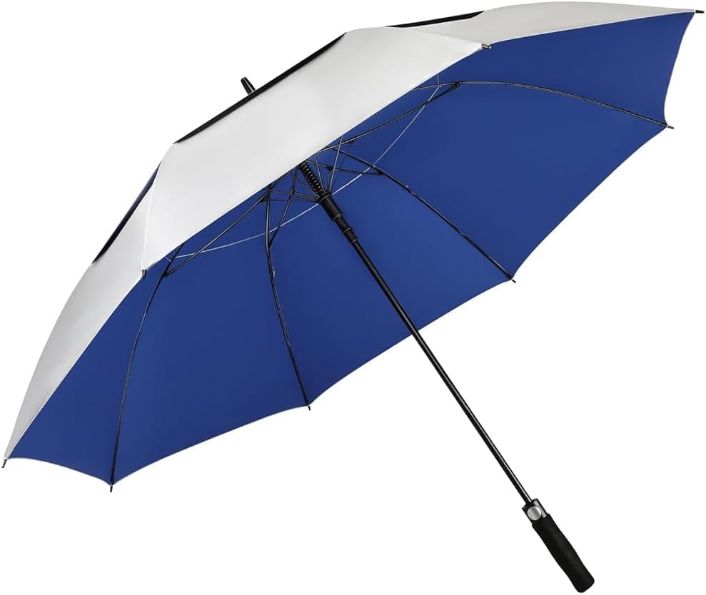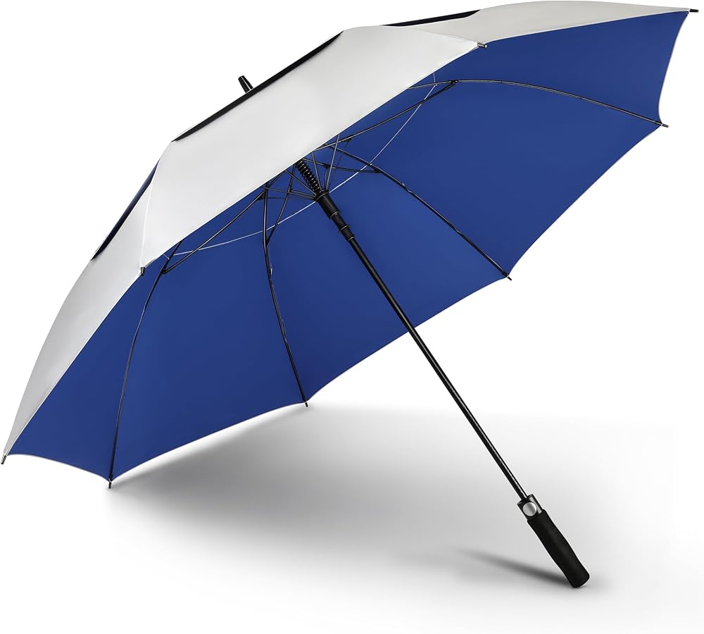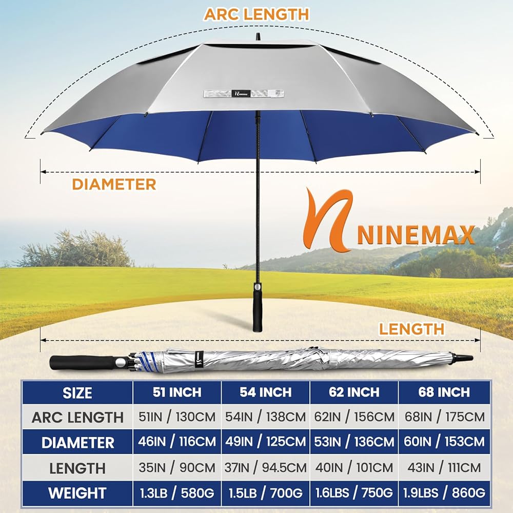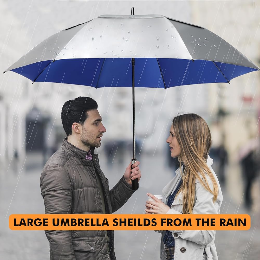☂️62 OR 68 INCHES EXTRA LARGE UMBRELLA PROVIDES MORE SHADE. The 62" golf umbrella is suitable to share for 2 adults or walk your dog. The 68" extra large umbrellas for sun would be a family size to keep 2 adults and 1 child against the sun. With this large golf umbrella, 2 people at least get covered, keep out of sunburn, protecting sensitive skin
