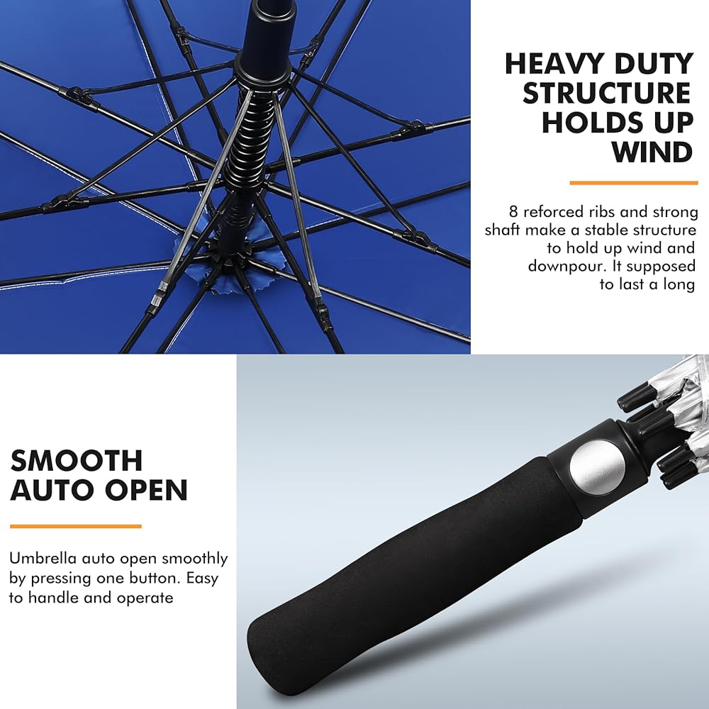 ⚙️AUTO OPEN FOR ONE HAND OPERATION: Pressing one button to auto open the strong large umbrella quickly and smoothly, easy to operate while getting off the car on rains, convenient to operate while only have one hand free