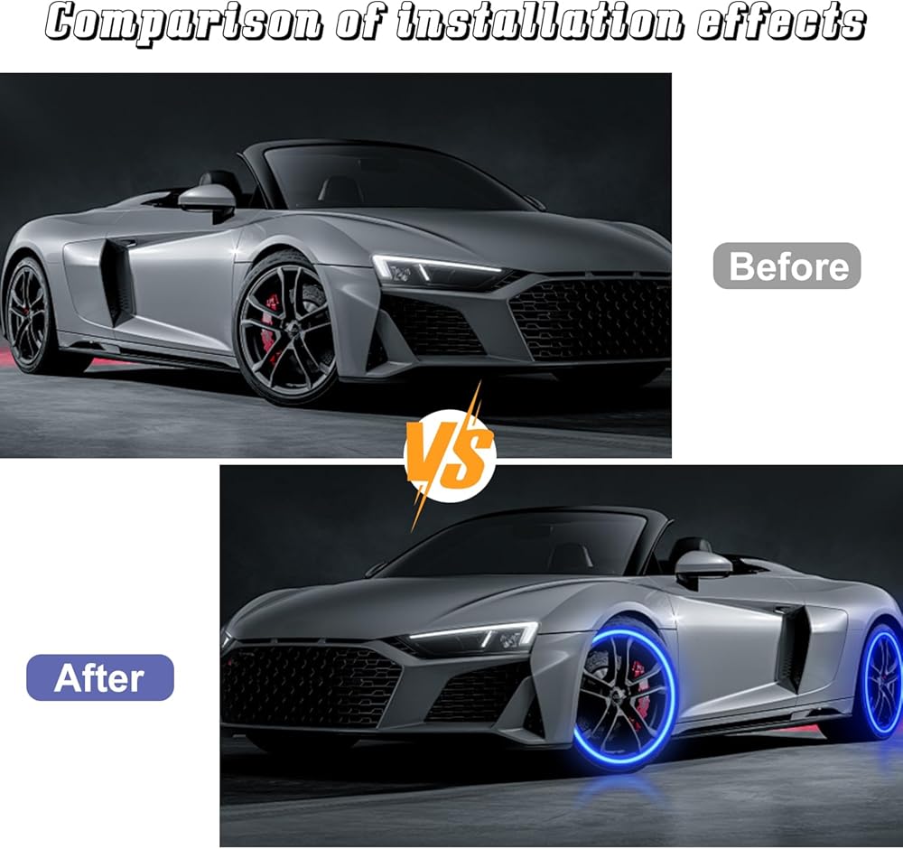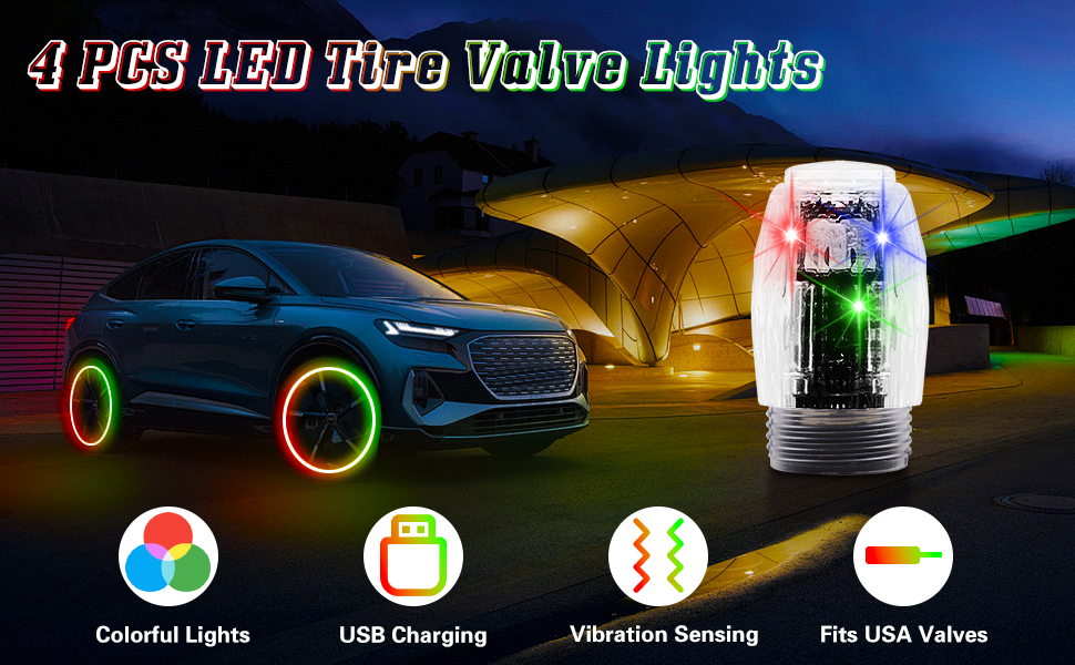 【USB Rechargeable & Easy installation】Our tire valve lamp can be easily charged with the included USB cable and takes only 20 minutes to fully charge, eliminating the need to purchase batteries. Simply remove the rubber ring, install it on the valve stem by rotating and tightening it, and it will emit a colorful halo with the vibration of the tire.