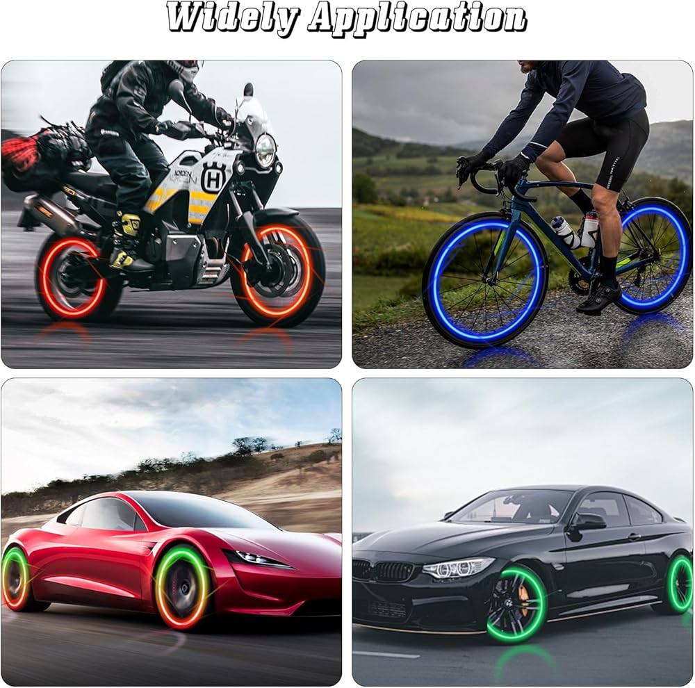【Package Include & Perfect Gift】4 colorful x super cool bright led bike wheel tire valve lights. Compact size allows for quick and easy storage. It's the perfect gift for kids, children, boys, girls, teenagers, and adults of all ages on birthdays, and Christmas.
