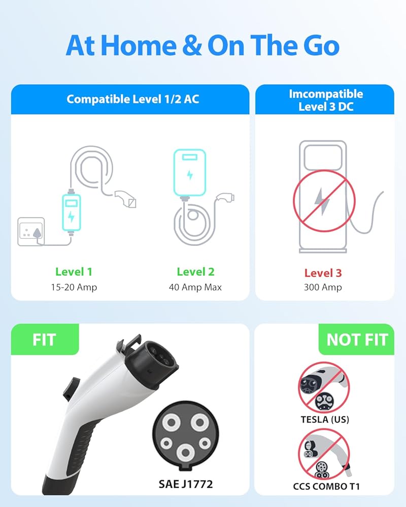 【Durable EV Charging Cable】- Made of high-quality and 100% copper TPE cable, solid J1772 connecter and scoket, the ev charger extension cord is built to withstand the rigors of everyday use. It is stronger and more durable than other cables on the market, ensuring that it will last for a long time. Additionally, its waterproof design (IP66 rated) allows you to use it in any weather condition.