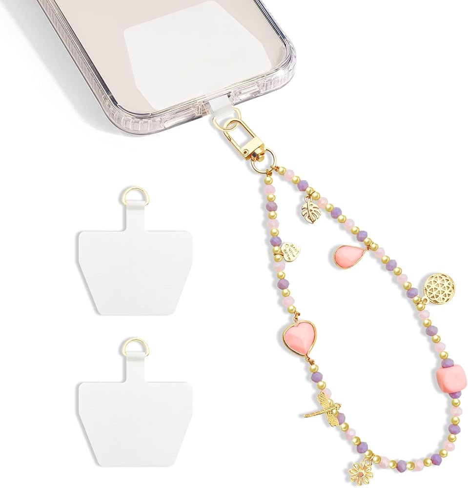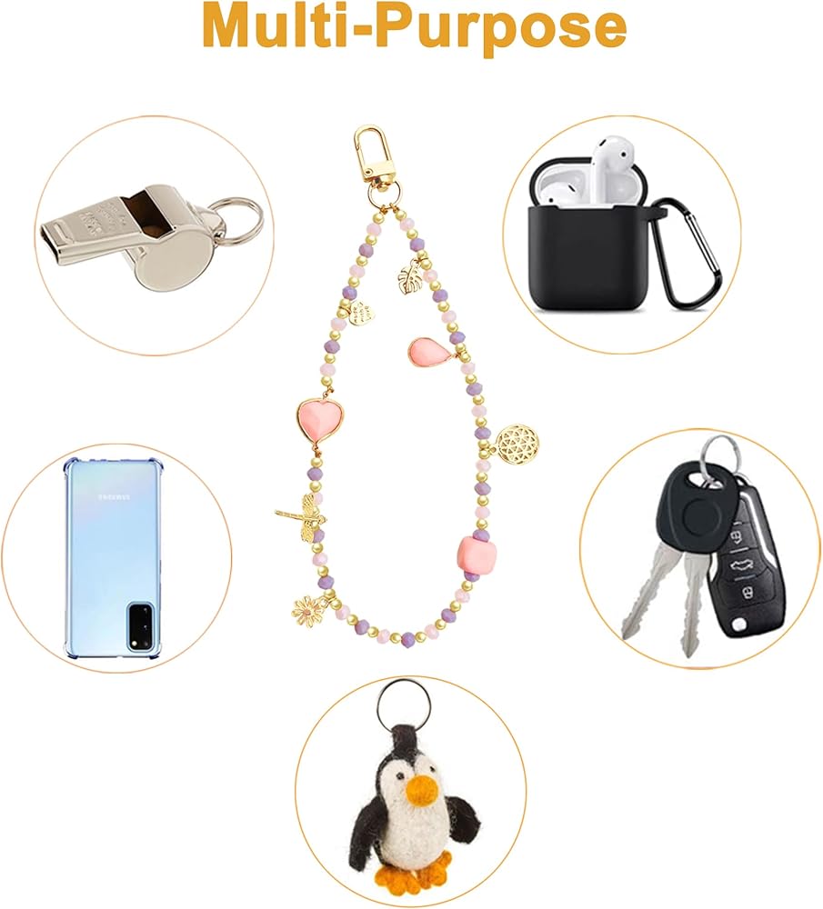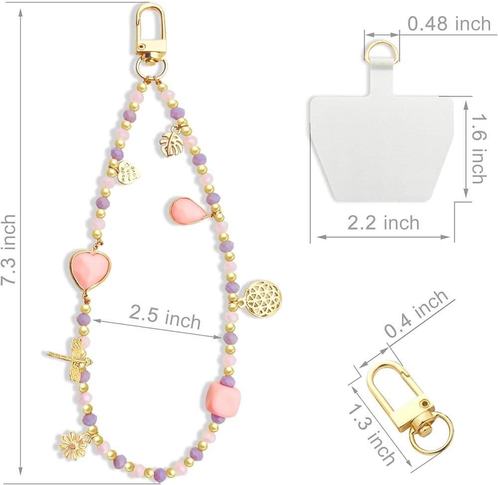 FUNSEE beaded phone wrist strap is a sweet gift for girlfriend, wife, mother on birthdays, anniversaries, holidays, graduations, Valentine's Day, Mother's Day, summer,holiday,beach,etc. characters: Size: 7.3inch Material: acrylic beads、gold beads,gold flowers Color: pink Style: fashion y2k phone strap Package: 1 x Phone Wrist Strap 2 x Durable Pad