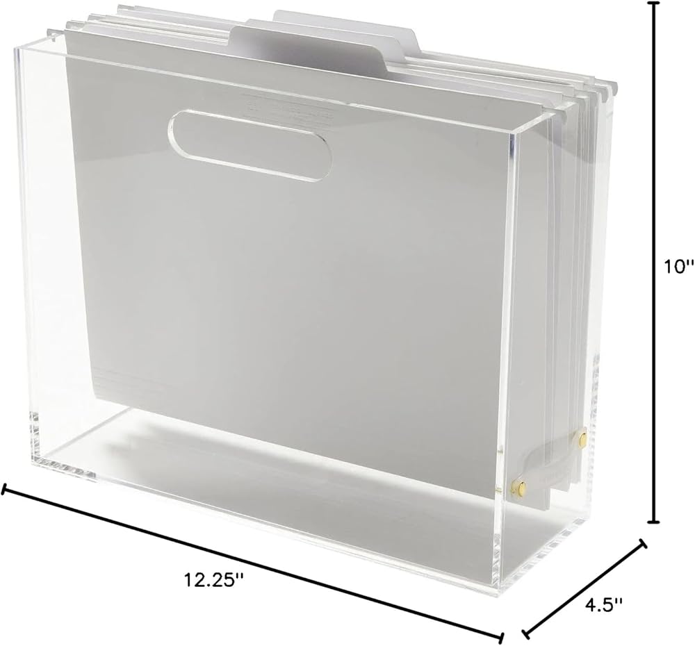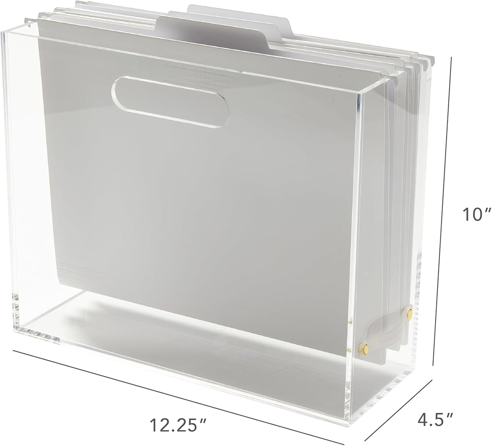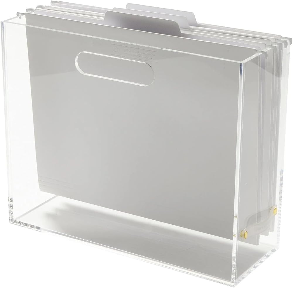 Modest design with robust utility; organize file folders, mail, and other documents in the 5 slots of this 10” by 11.5” by 6.5” clear acrylic collator