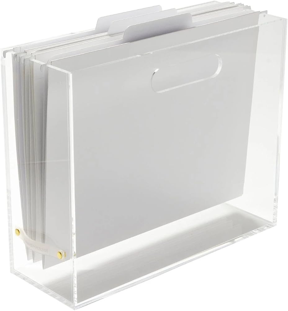 Demonstrate your care for details with our 10” by 11.5” by 6.5” clear acrylic collator. Sleek utility and a chic modern design elevates your desk while accommodating file folders, mail, and other documents in 5 slots. Durably constructed from .25” thick, hard cast acrylic with finely polished edges. Simply perfect on its own, this desk or countertop sorter coordinates with the other pieces in our acrylic collection, including our acrylic desk accessories and file boxes. • The world of russell+hazel lies at the intersection of color, function and light-heartedness. We have an instantly recognizable style language, developed through colors and patterns that capture the essence of who we are and what we stand for. Our philosophy is that good design is not over-design or design for design's sake, rather pleasing design with loads of functionality. While fresh in spirit, the products represent a constant and complete dedication to quality.