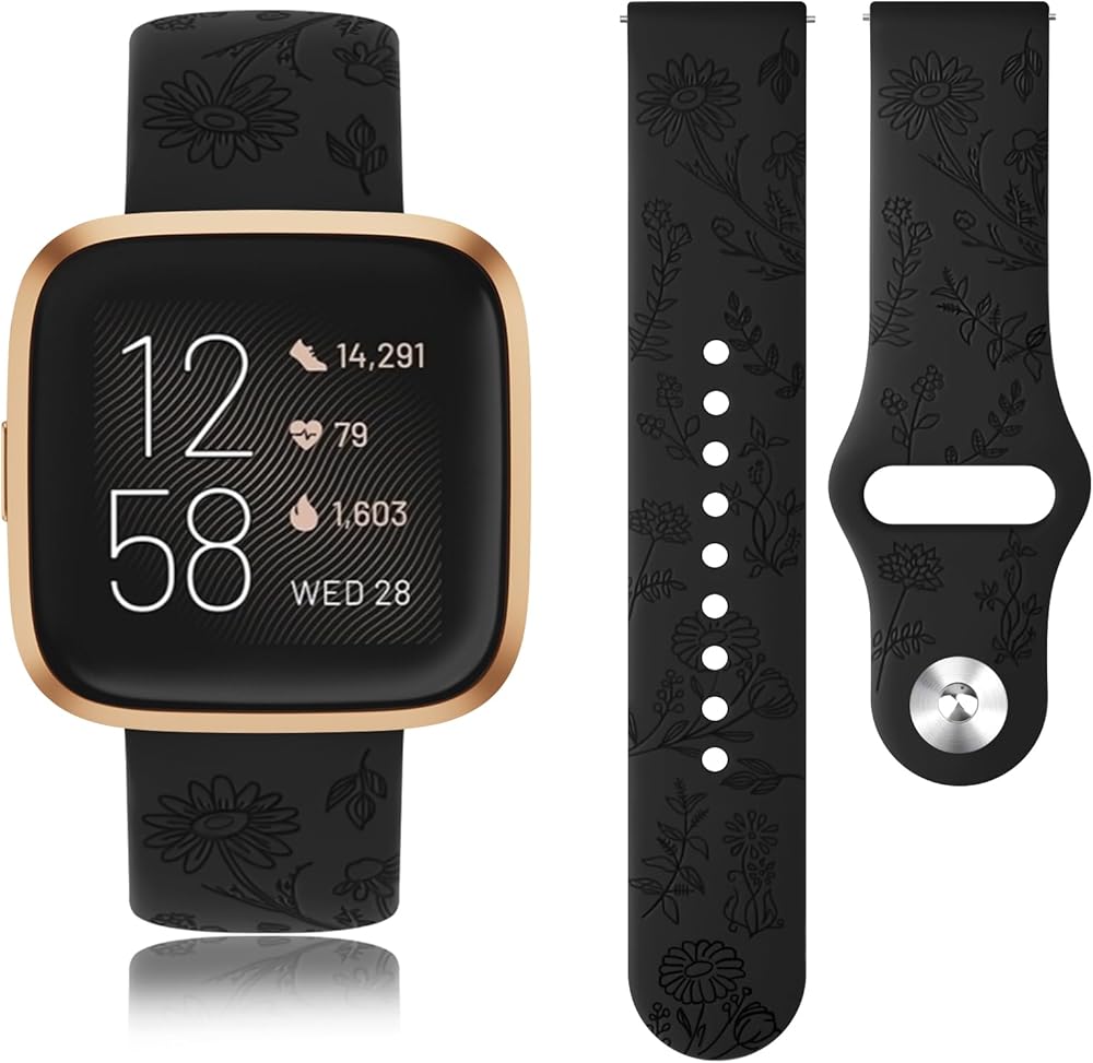 1x Silicone Floral Engraved Band for Fitbit Versa 2