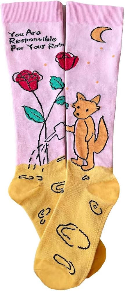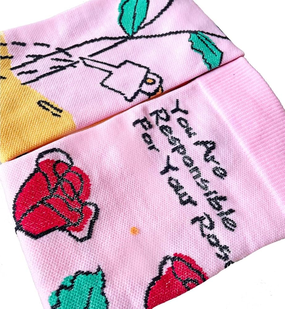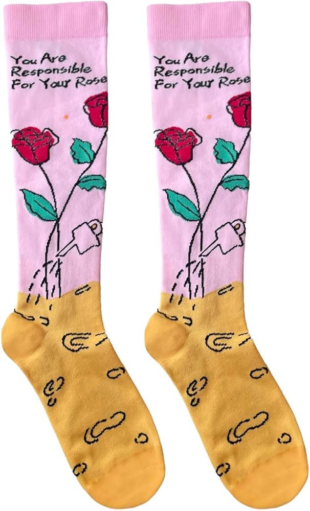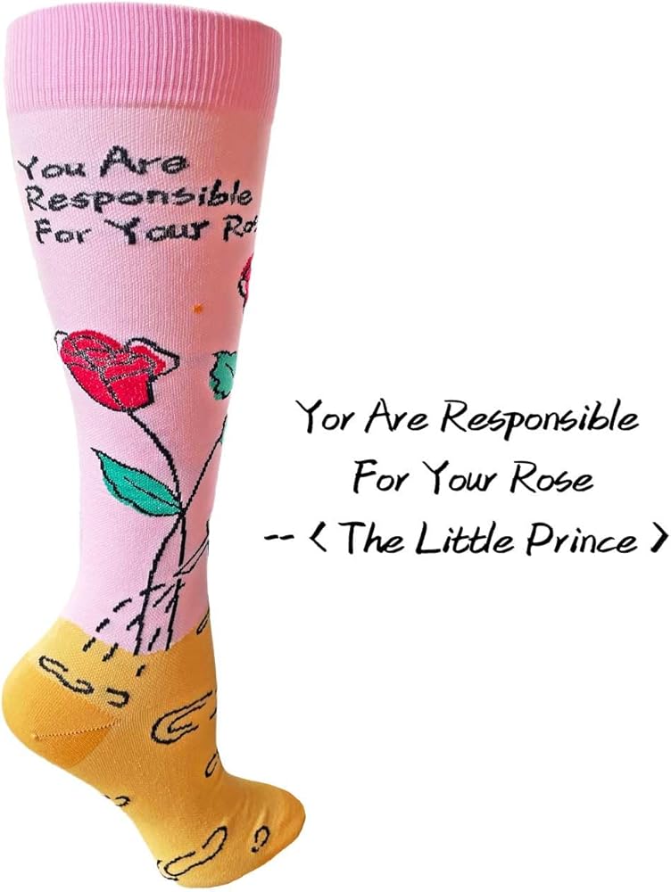 STYLISH DESIGN: Our compression socks are not only functional but also stylish. The unique design features a fox and roses with the inspiring quote "You're responsible for your rose." The playful pattern adds a touch of whimsy to any outfit, and the motivational message reminds you to take charge of your life. Whether you wear them to work, travel, or exercise, our compression socks keep your feet and legs comfortable and fashionable.